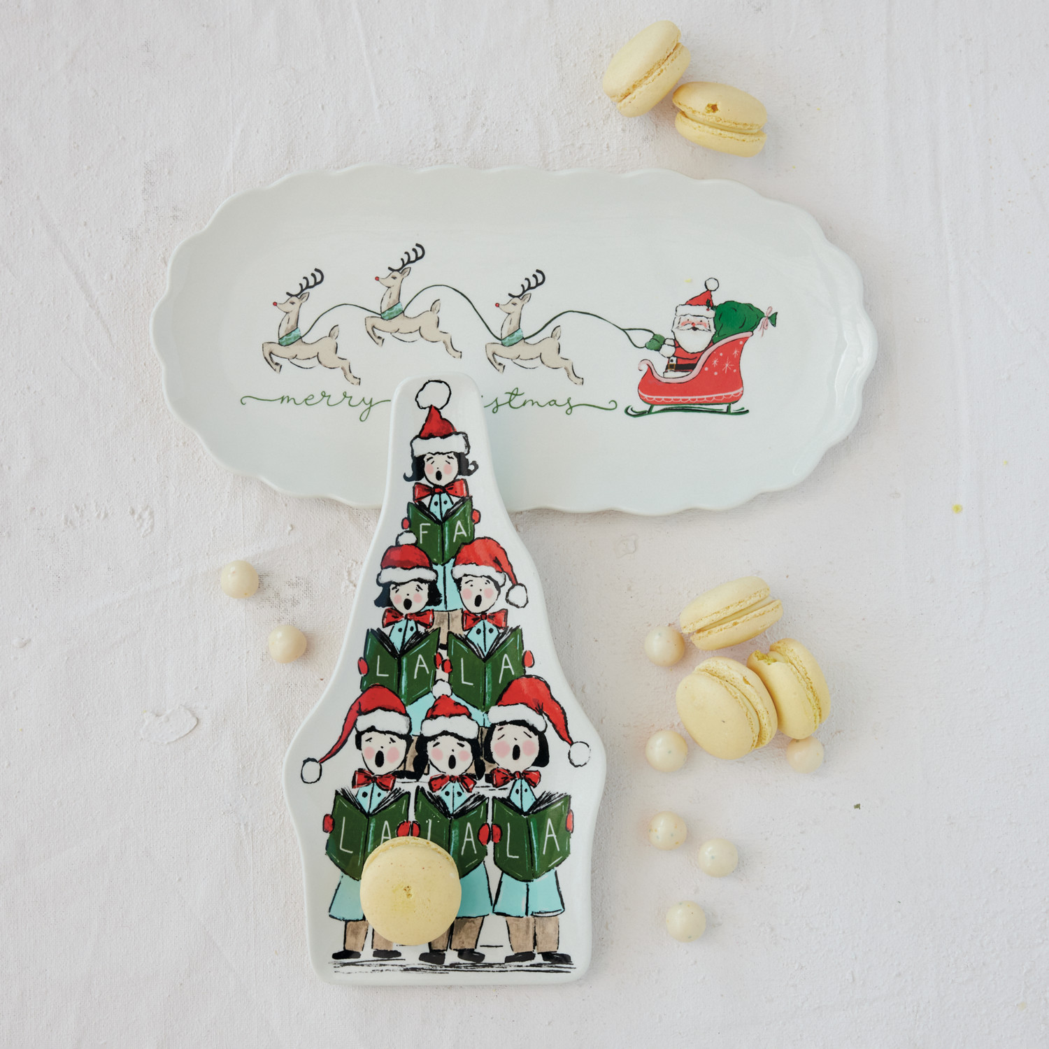 Stoneware Scalloped Platter with Santa's Sleigh & Reindeer "Merry Christmas" ©