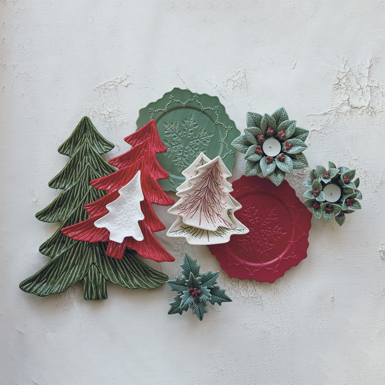 Catalog Name: 6"L x 5"W x 1-1/2"H Hand-Painted Stoneware Striped Organic Shaped Tree Shaped Dish, Pink & Red