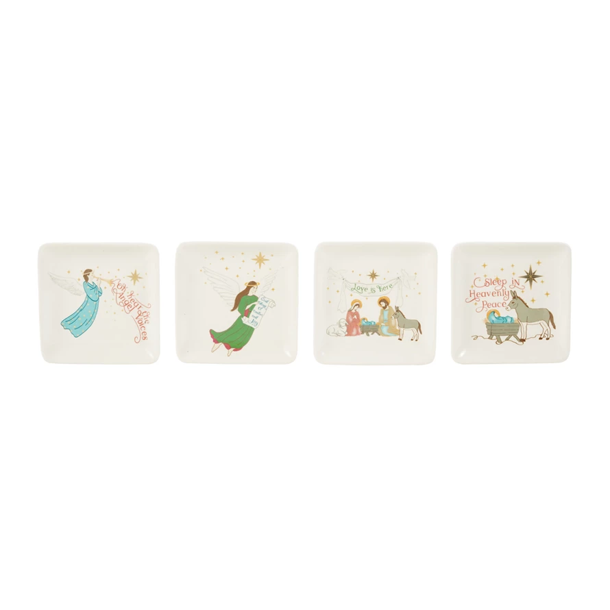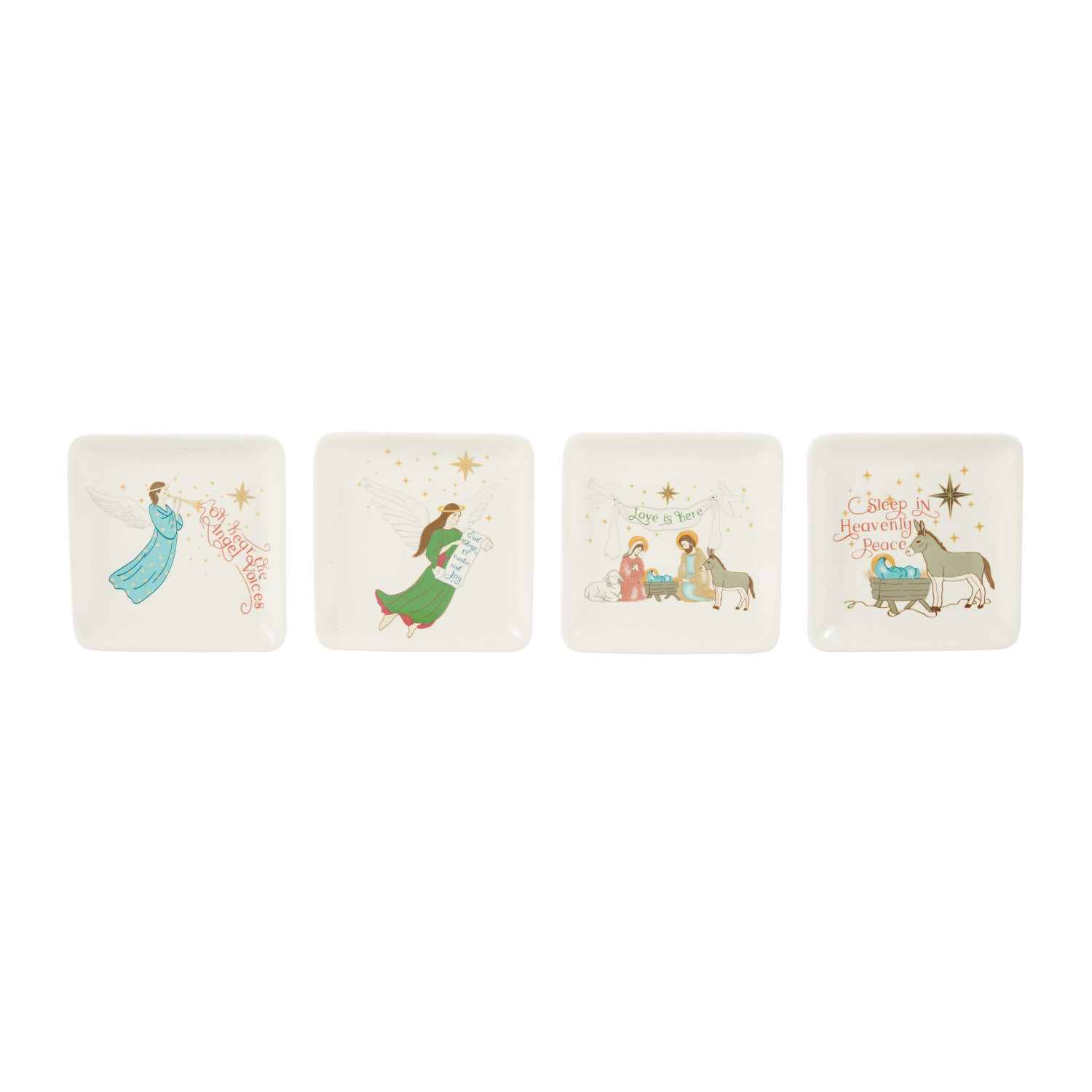 Catalog Name: 4-3/4" Square Stoneware Dish w/ Holiday Figure, Multi Color, 4 Styles ©