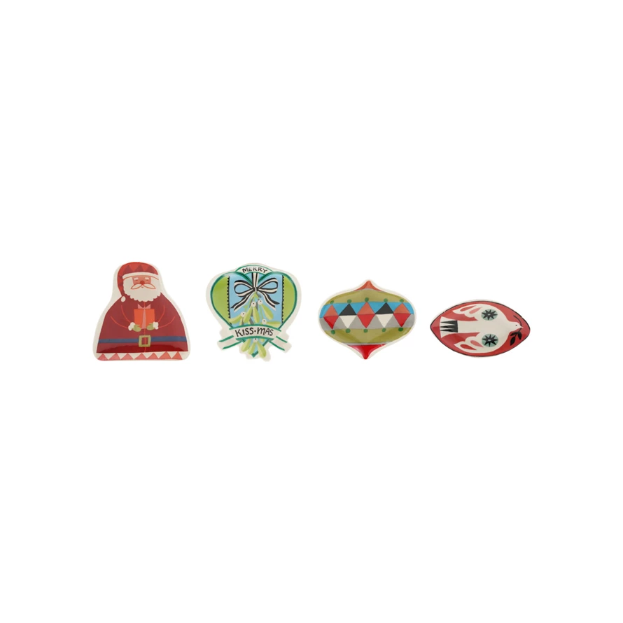 Catalog Name: 4"L Stoneware Shaped Dish w/ Holiday Design, Multi Color, 4 Styles ©
