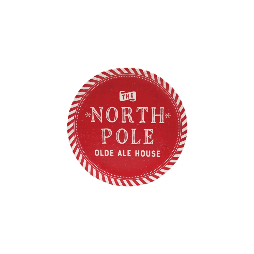 Catalog Name: 16" Round Melamine Platter/Tray w/ Striped Border "The North Pole…", Matte Finish, Red & White ©