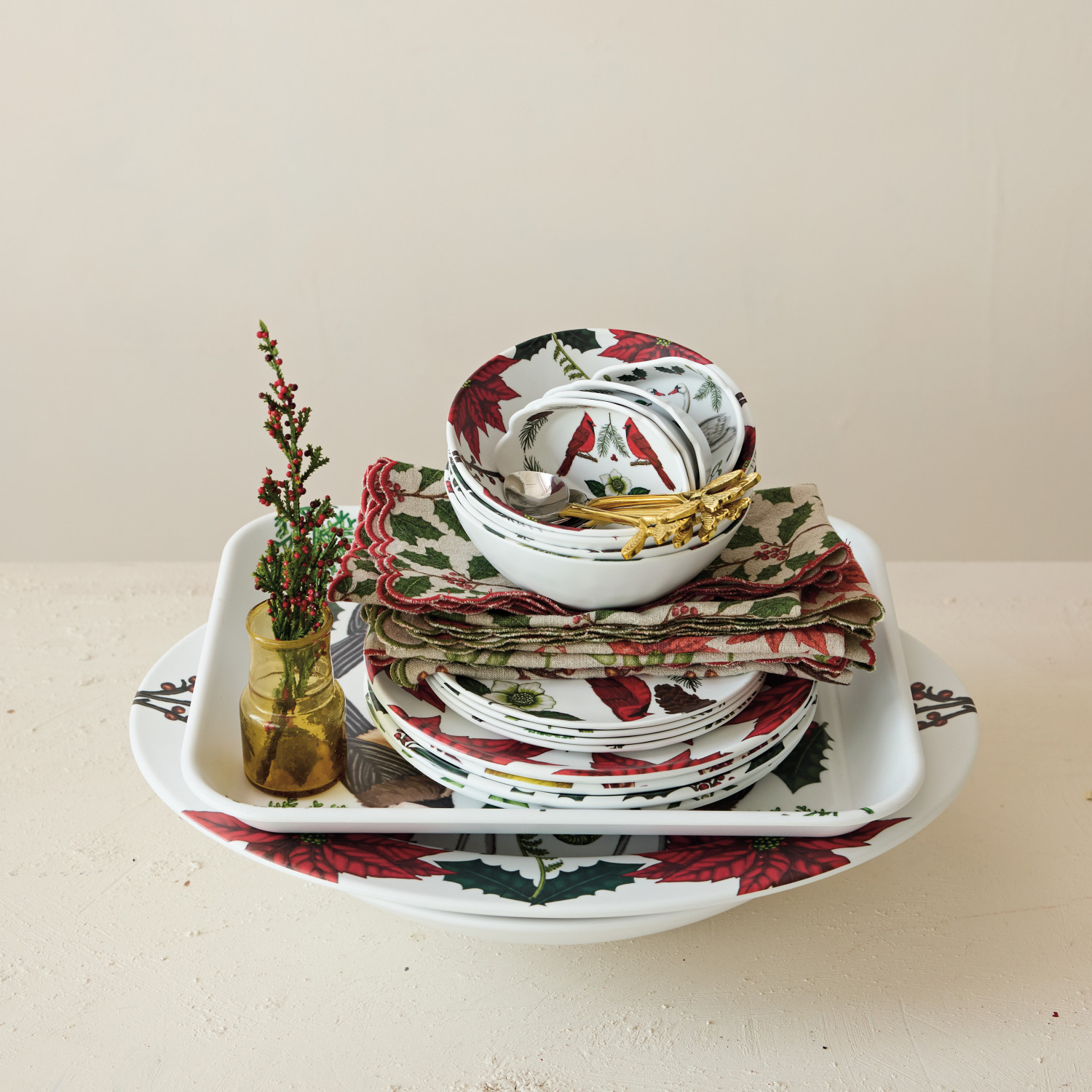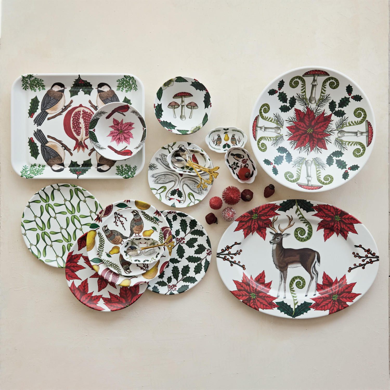 Melamine Platter with Seasonal Botanicals & Deer, Matte Finish ©