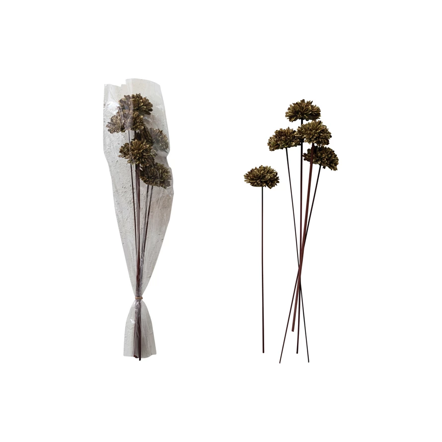 This dried natural sesame flower bunch is a lovely and delicate piece that will enhance any space. The flower bunch features dried natural sesame flowers that have a green color and a soft texture, creating a cozy and elegant effect. The flower bunch also has a natural and varied shape and size, creating contrast and balance. The flower bunch is made of sesame flowers. It is easy to clean and maintain. The flower bunch measures 5.5 inches in length, 4 inches in width, and 23.5 inches in height. It contains 5 pieces; each one will vary slightly. The flower bunch is a versatile and stylish piece that can be used for decorating the vase, basket, or wall, or for making a wreath or bouquet. It is a perfect addition to any space that needs some floral beauty and charm.