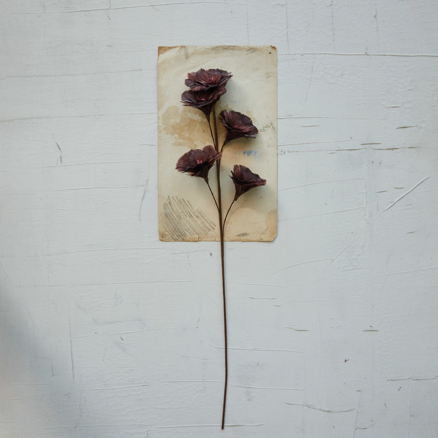 This burgundy feather flower stem with metal flower stem is a soft and delicate piece that will enhance any space. The stem, a burgundy color, creates a cozy atmosphere with its deep, rich effect. Its feather flower design adds a realistic quality, while the metal stem material provides a smooth, flexible display, resulting in a stunning and unique display. The stem is made of feathers and metal with a smooth and flexible quality. It is easy to clean and maintain. The stem measures 10.25 inches in length, 4 inches in width, and 33 inches in height. This is a versatile and stylish piece that can be placed in a vase, jar, or basket. It is a lovely piece to add some texture and color to the home decor. A soft and delicate burgundy feather flower stem with metal and flower stem. A lovely piece to add some texture and color to the home decor. Ideal for placing in a vase, jar, or basket.