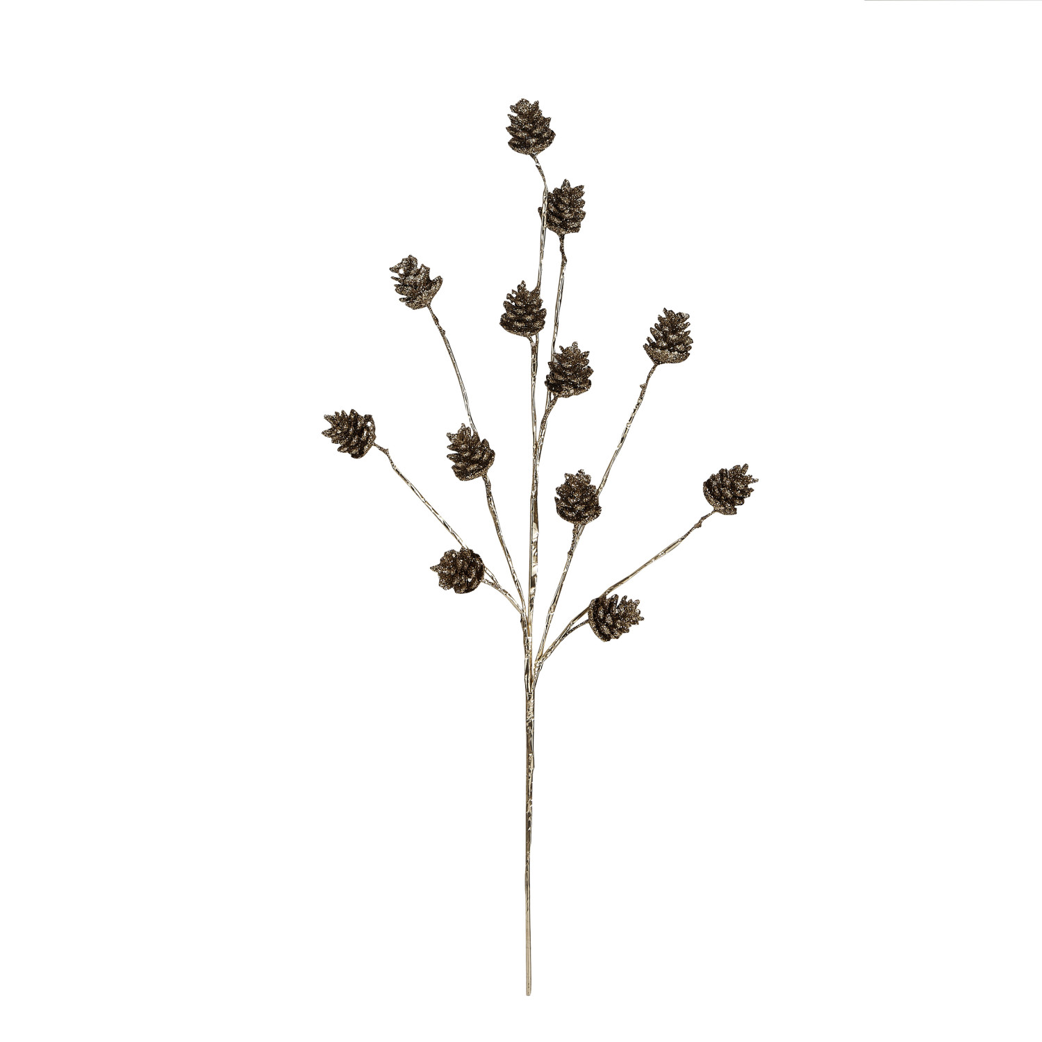 Catalog Name: 18"H Dried Natural Pinecone Pick w/ Glitter, Gold Color