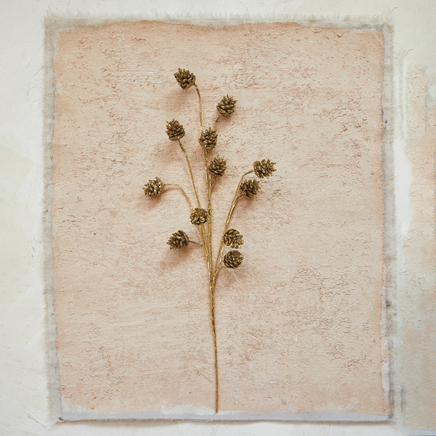 Dried Natural Pinecone Pick w/ Glitter, Gold Color