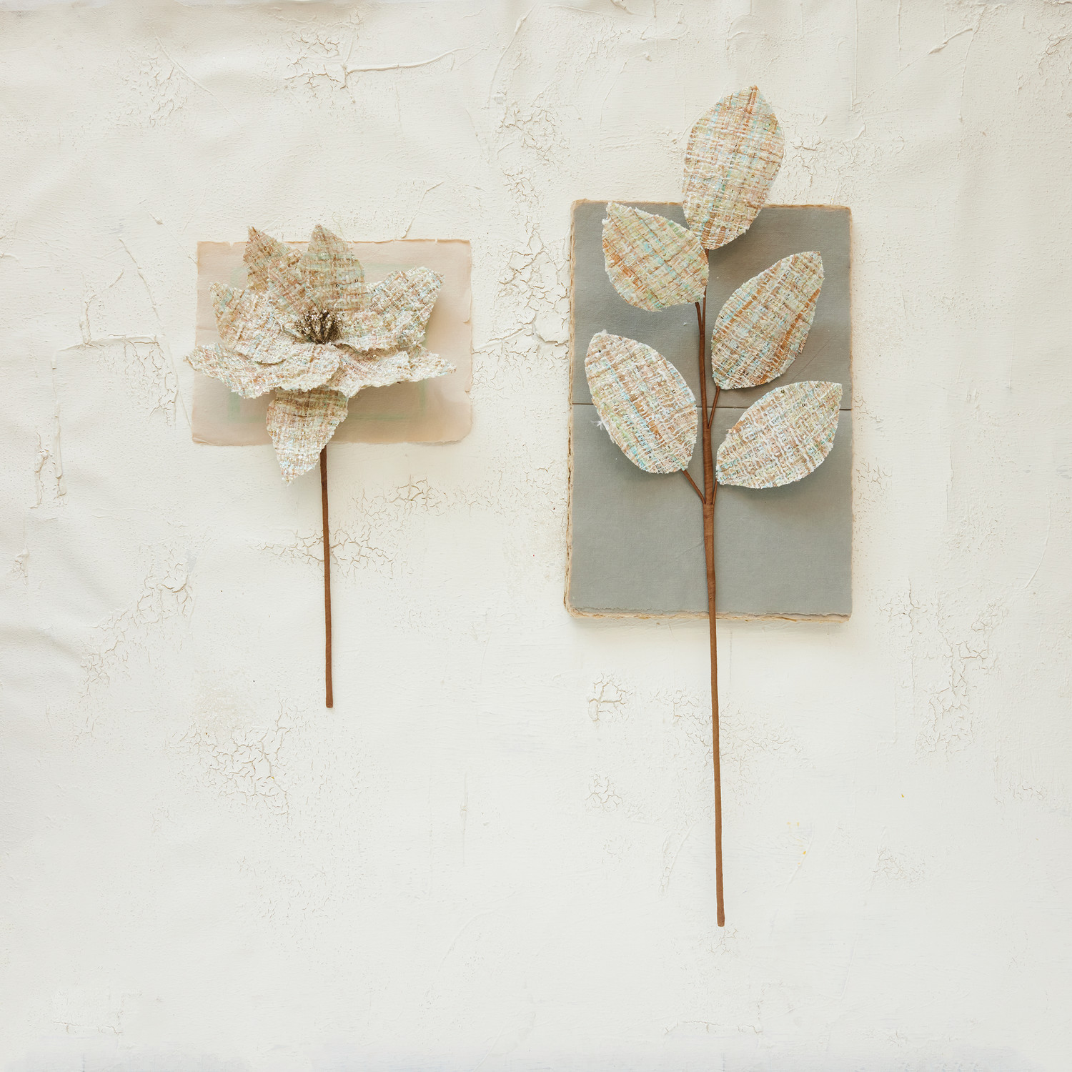 Fabric Tweed Poinsettia Pick with Plaid Pattern