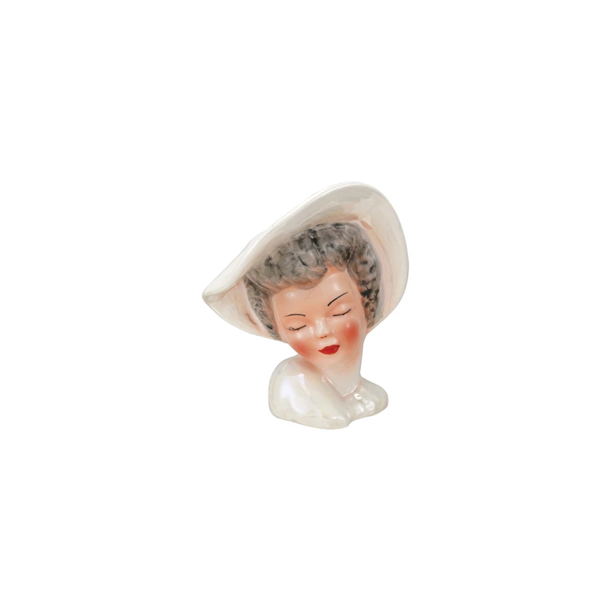 Stoneware Vintage Reproduction Lady with Hat Shaped Vase