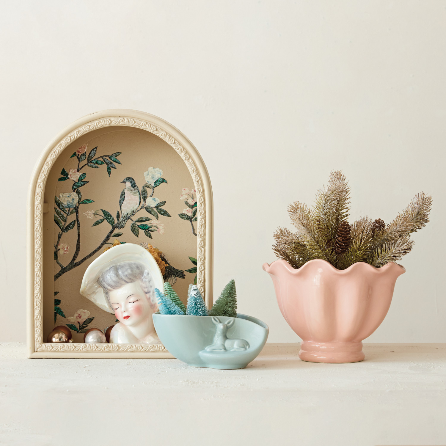 Catalog Name: 6"L x 3"W x 7"H Stoneware Vintage Reproduction Lady w/ Hat Shaped Vase, Iridescent Finish, Multi Color