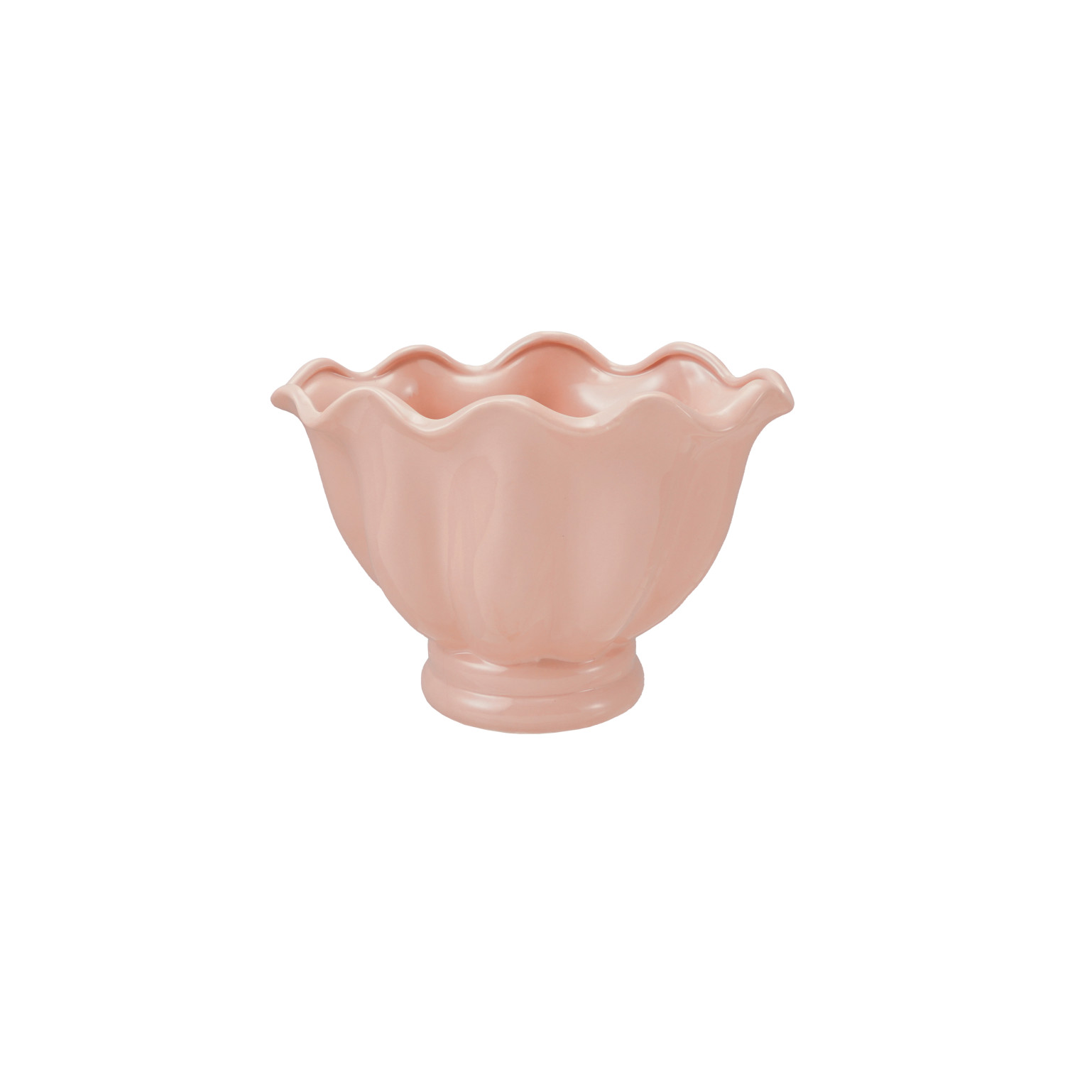 Stoneware Vintage Reproduction Ruffled Footed Container, Pink