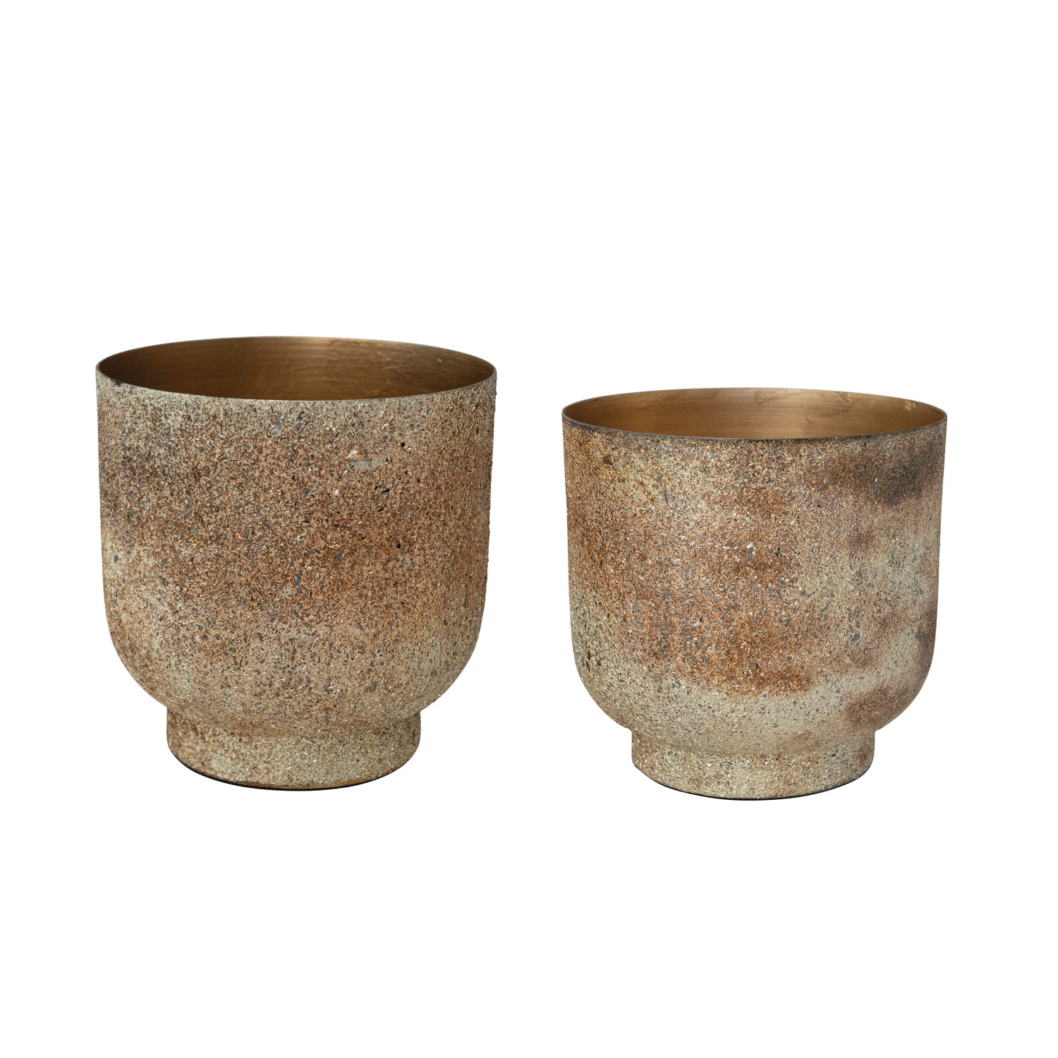 Metal Planters, Tarnished Silver Finish, Set of 2 (Holds 6" & 5" Pots)