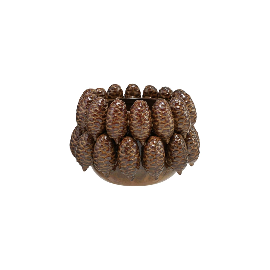 Stoneware Planter with 3D Pinecones, Brown (Holds 4" Pot) (Each One Will Vary)