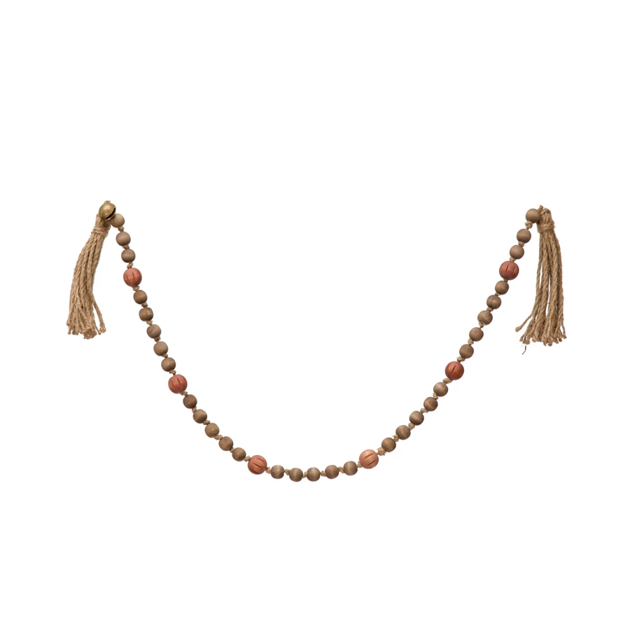 Catalog Name: 40"L Paulownia Wood Bead Garland with Jingle Bells and Jute Tassels, Multi Color