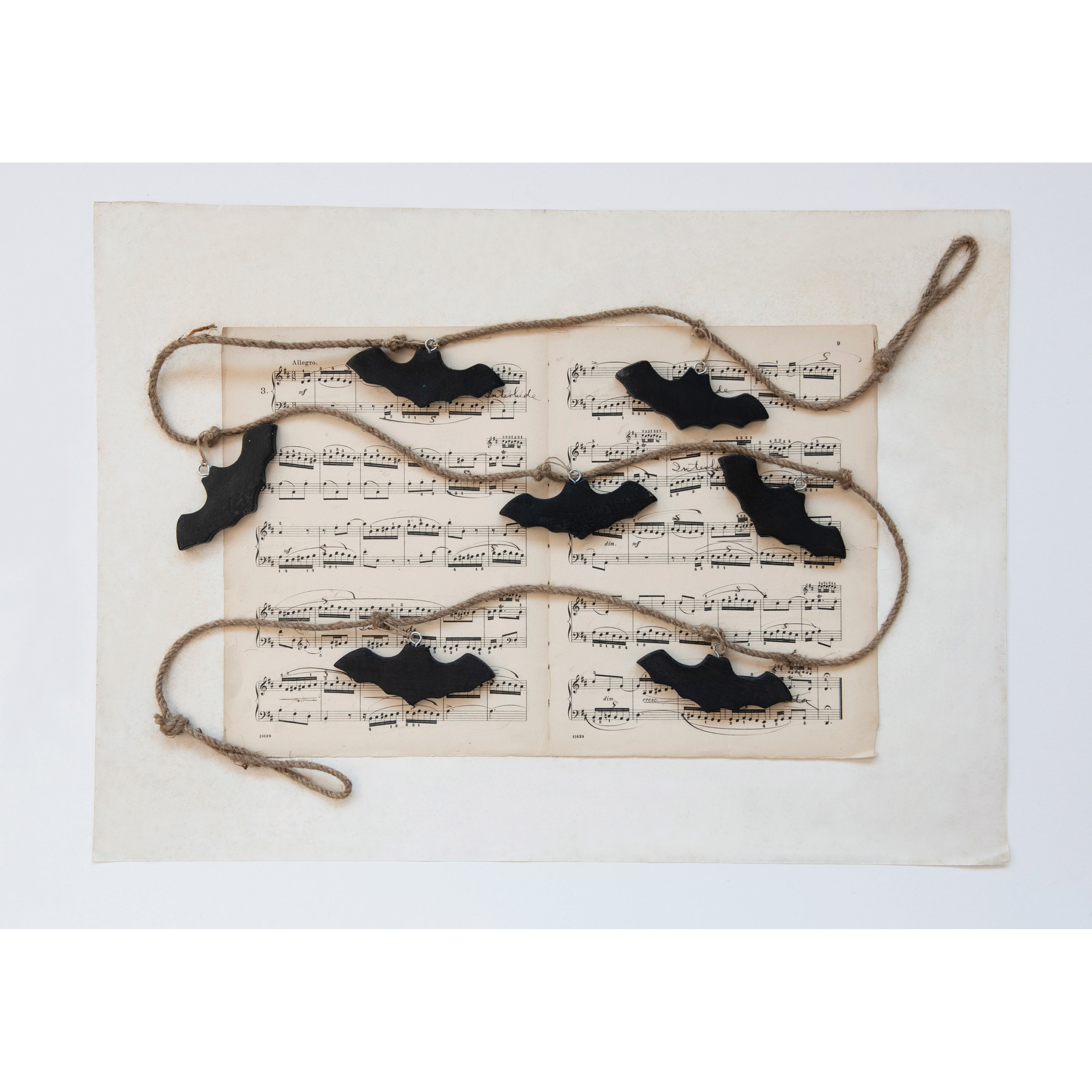 72"L Mango Wood and Jute Rope Bats Garland, Black