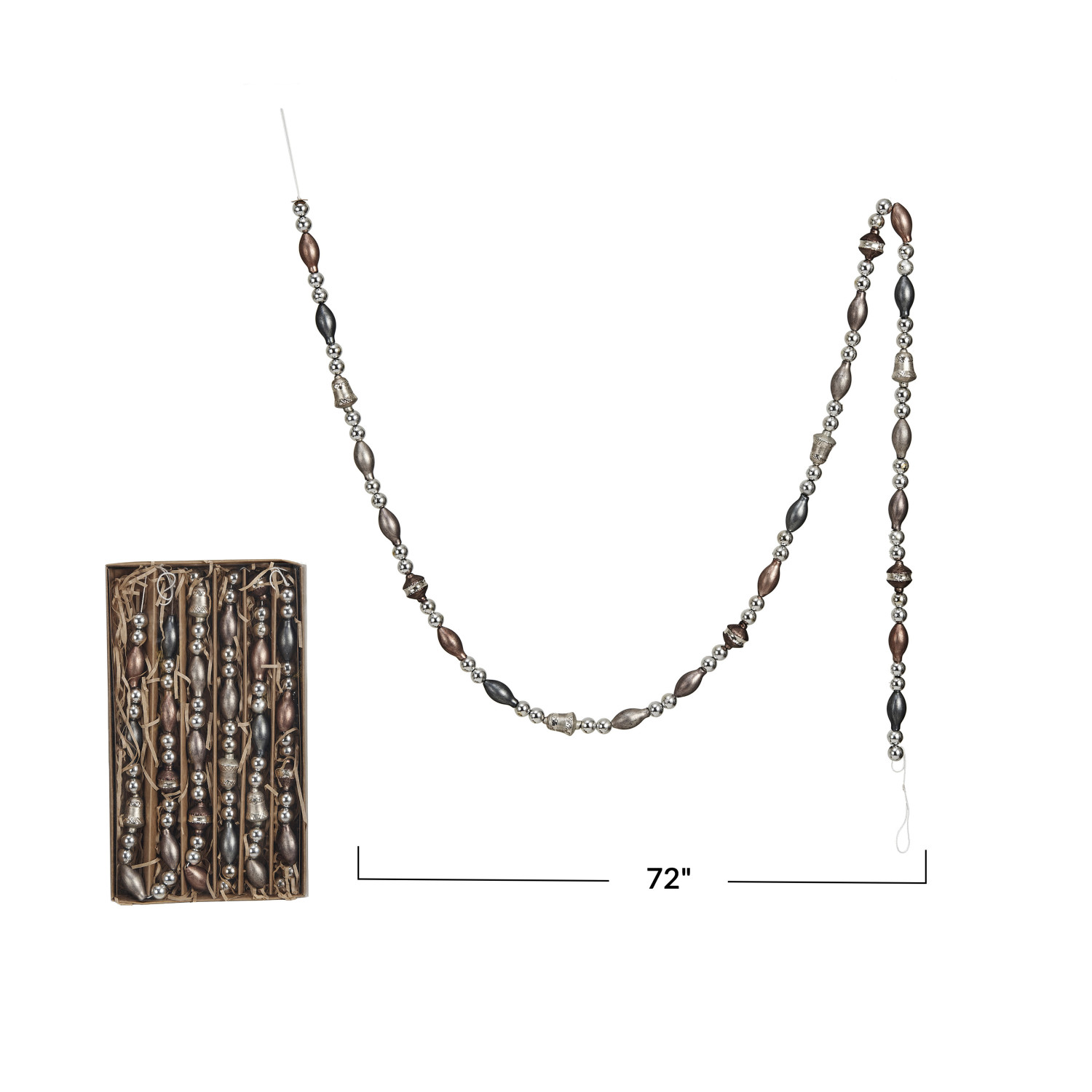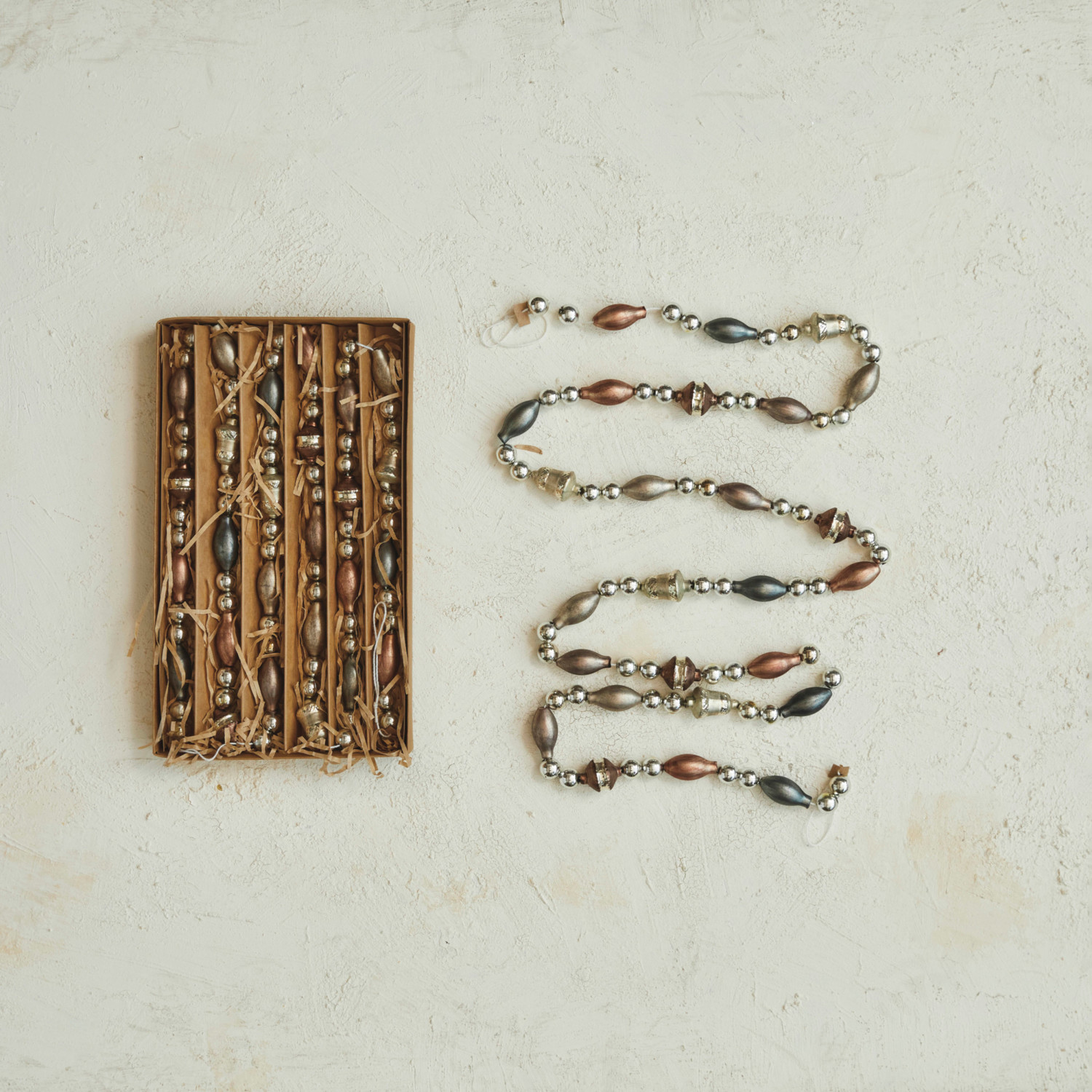 This glass garland, presented in a kraft box, features a string of beads in rich, antique metallic colors that exude a sense of timeless elegance. The classic design and shimmering hues make it a versatile piece for both seasonal festivities and year-round display. Its length allows for creative placement, while the quality materials ensure it remains a staple in the decor collection for years to come. Whether looking to add a sophisticated touch to any space or give a gift that keeps on giving, this garland is sure to impress. This is a perfect choice for anyone who loves graceful and elegant home decor. A garland of glass beads in antique metallic colors, offering a classic and elegant look. An ideal match for traditional or vintage-themed decor, adding a touch of old-world charm. Ideal for draping over mantels, framing doorways, or accenting holiday trees.