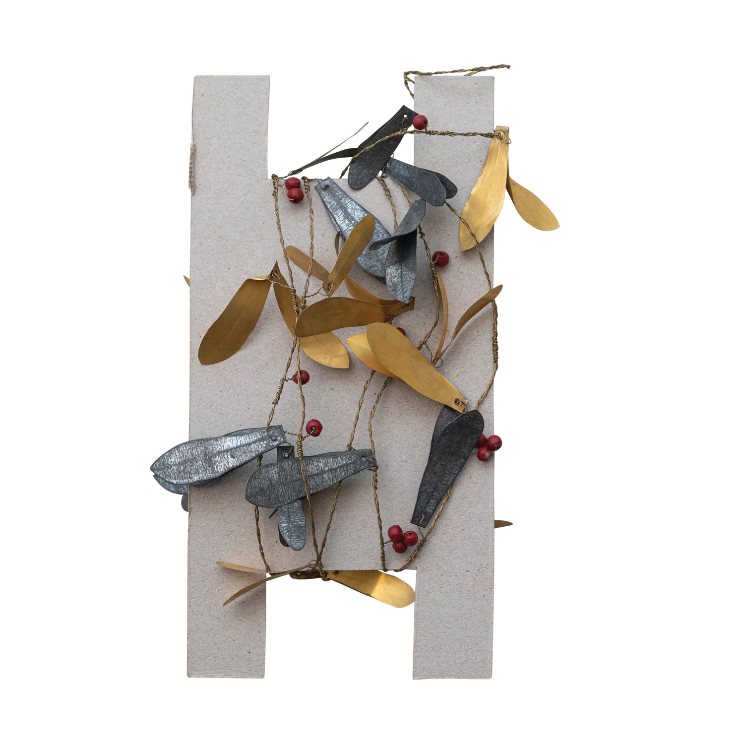 Brass & Galvanized Metal Leaf Garland, Red, Silver & Gold Finish