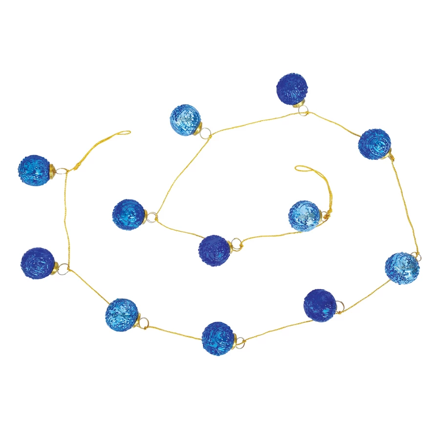 Catalog Name: 72"L x 2"H Embossed Mercury Glass Ornament Garland w/ Gold Cord, Blue