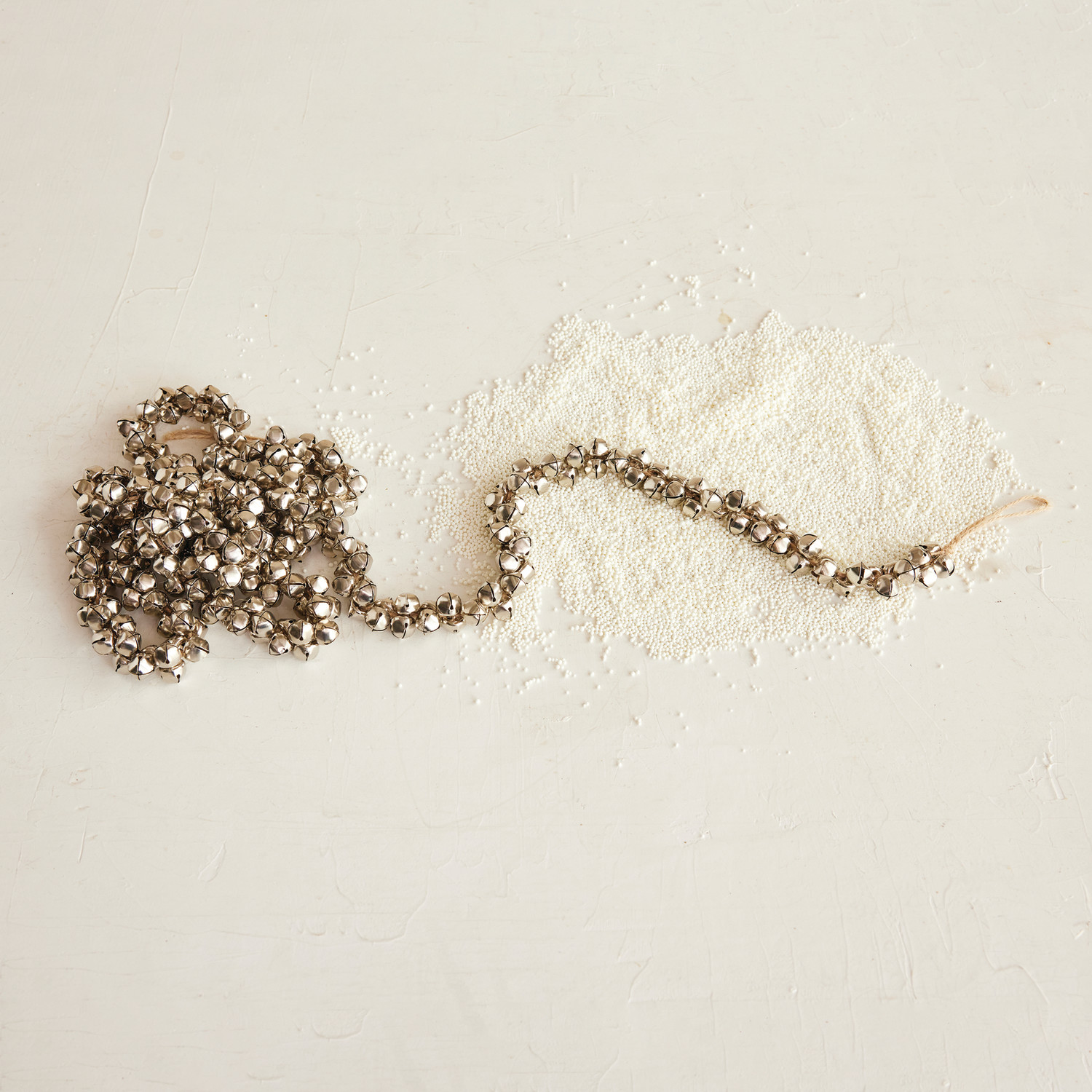Catalog Name: 72"L x 1"H Metal Jingle Bell Garland on Jute Cord, Silver Finish