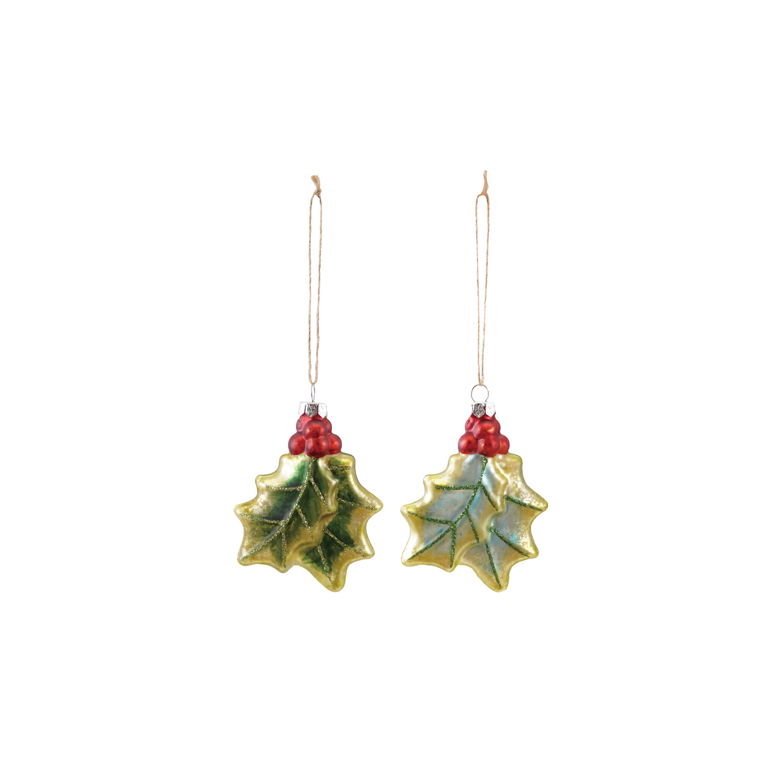 Hand-Painted Mercury Glass Holly Ornament with Glitter, 2 Colors