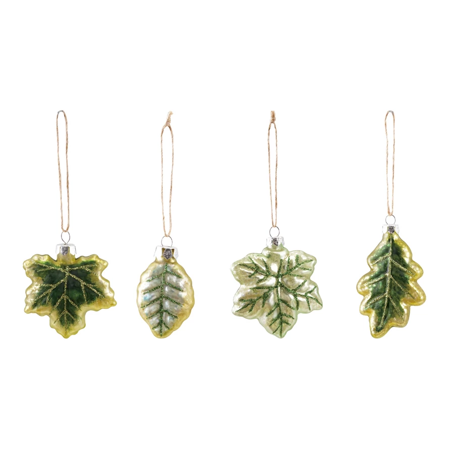 Catalog Name: Approximately 2-1/2"H Hand-Painted Mercury Glass Leaf Ornament w/ Glitter, 4 Styles