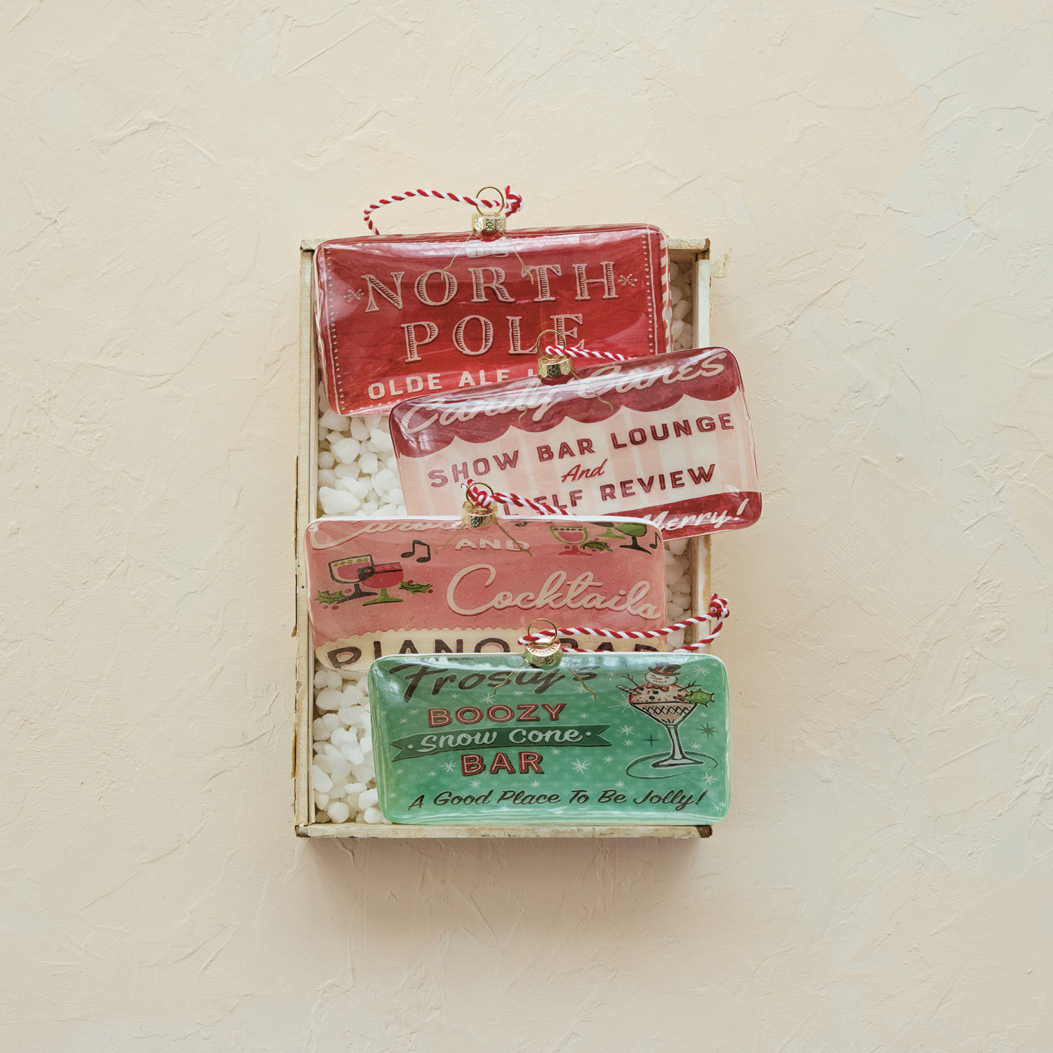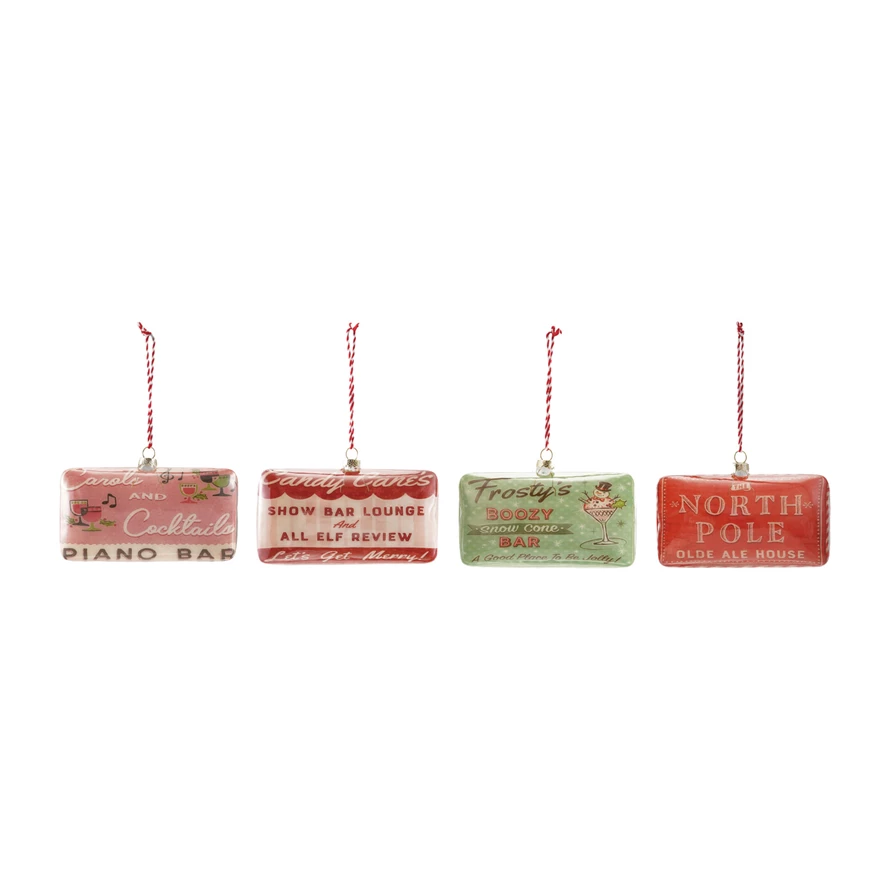 Glass Sign Ornament with Holiday Bar Saying & Image, 4 Styles ©