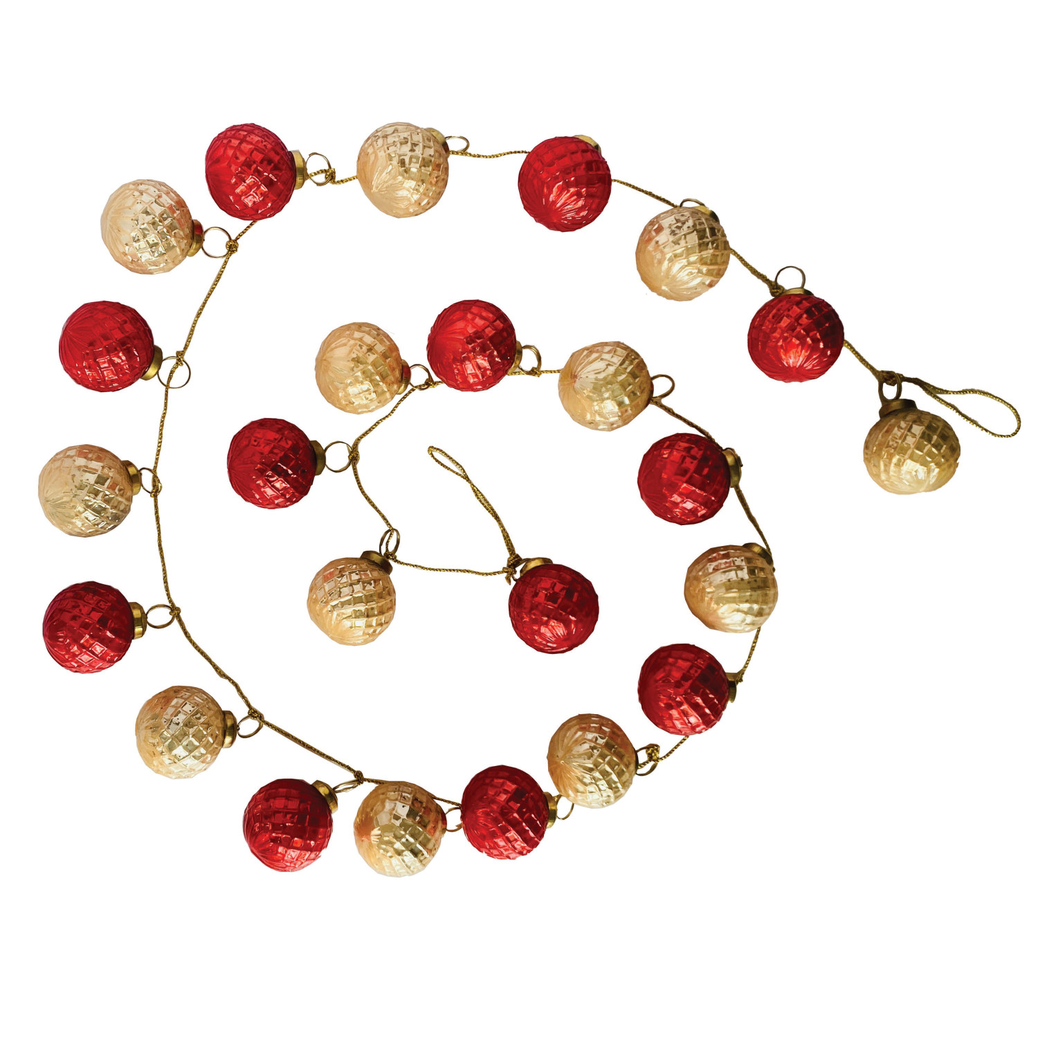 Catalog Name: 72"L x 2"H Embossed Mercury Glass Ball Ornament Garland w/ Gold Cord, Berry & Blush Color