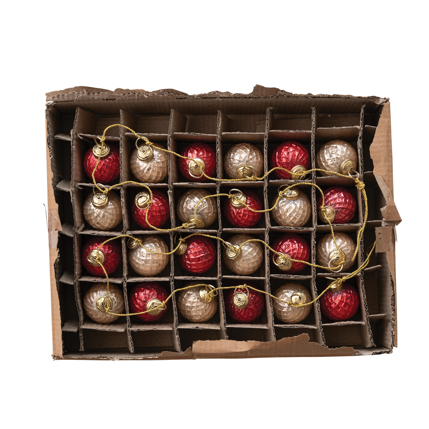 Embossed Mercury Glass Ball Ornament Garland with Gold Cord, Berry & Blush Color