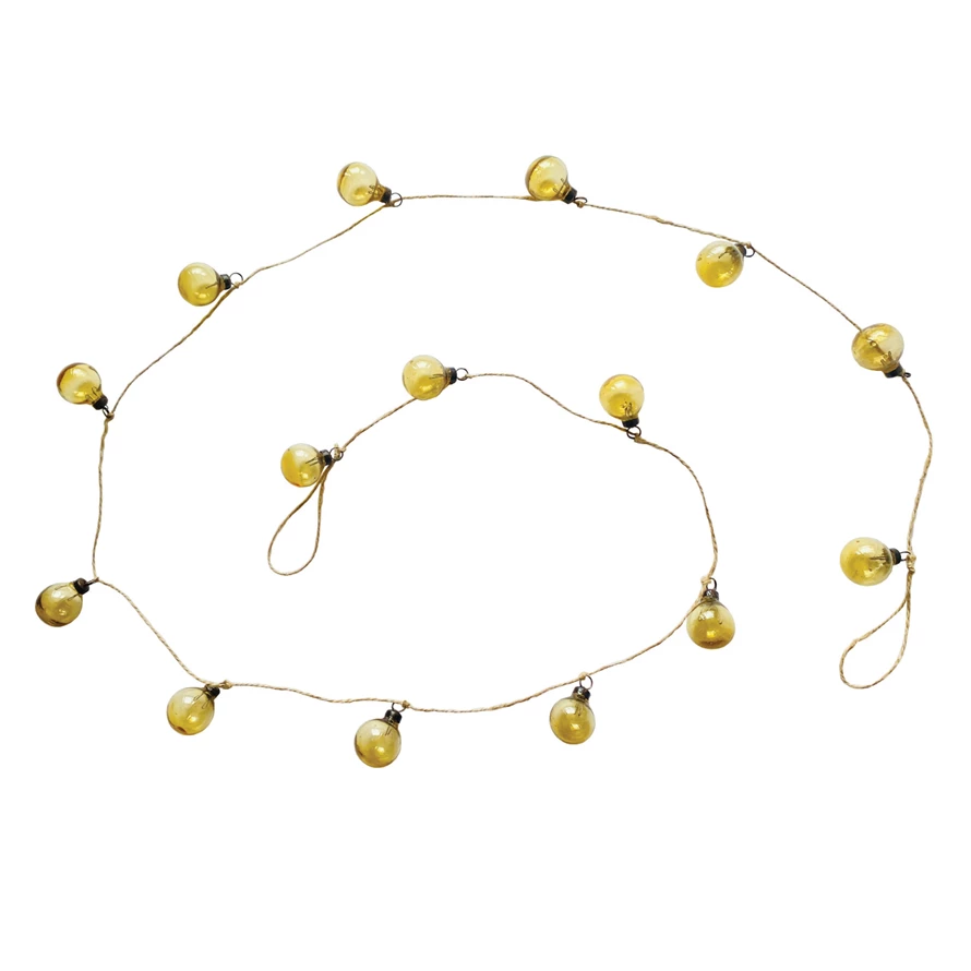Hand-Blown Glass Ball Ornament Garland with Jute Cord, Amber Color