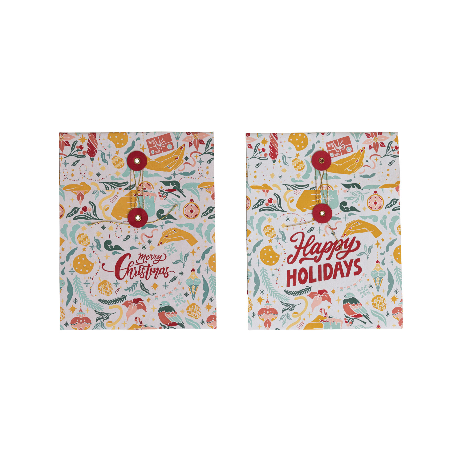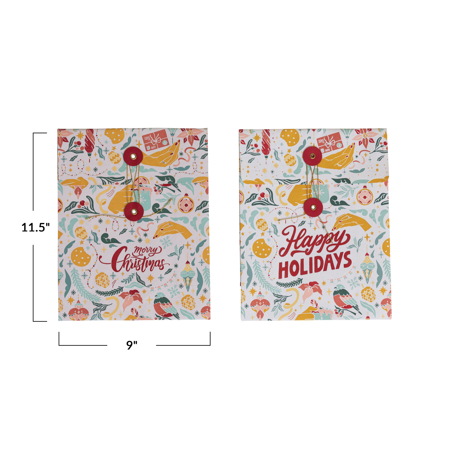 Recycled Paper Gift Bag w/ Closure "Happy Holidays/Merry Christmas", Multi Color, 2 Styles