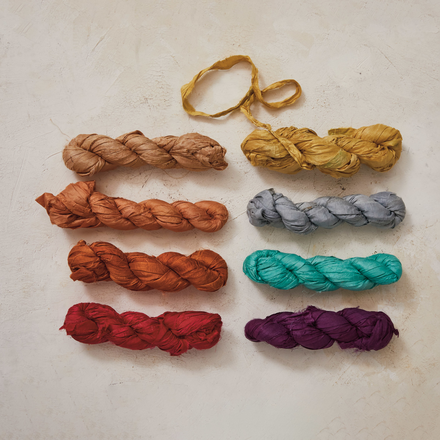 Catalog Name: Approximately 70-75 Yard Recycled Torn Silk Ribbon, Khaki Color (Each One Will Vary)