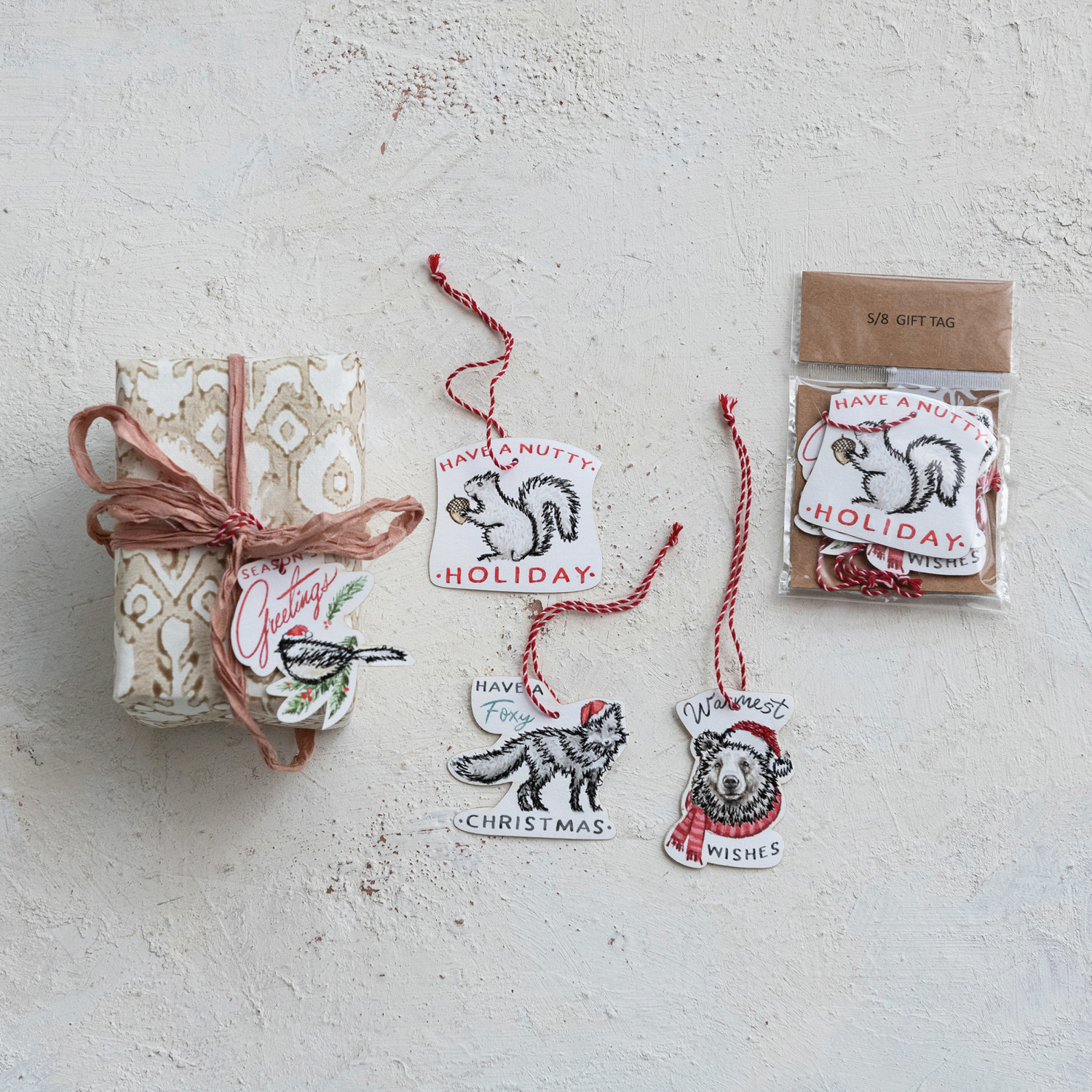Spread holiday cheer and embrace a sustainable Christmas with this delightful 8-pack paper ornament and gift tag set. Crafted from paper, celebrate holidays in a way that's kind to the planet. Each ornament or gift tag features a unique design, with 4 different styles included in the pack. These charming designs boast a heartwarming holiday saying, a lovable animal illustration, and decorative cotton embroidery accents (designs may vary). Use them to adorn the Christmas tree, personalize holiday gifts, or create festive décor throughout the home, as these versatile ornaments and gift tags are sure to add a touch of whimsy and joy to the holiday season. Each ornament or gift tag measures approximately 5.25 inches high, making them the perfect size for a variety of decorating needs. Celebrate the season in style with this festive 8-pack of ornaments and gift tags. Each ornament/gift tag features a unique design with a charming holiday saying, a lovable animal illustration, and decorative cotton embroidery accents. Perfect for adding a festive touch to the Christmas tree, personalizing gifts, or creating holiday décor.