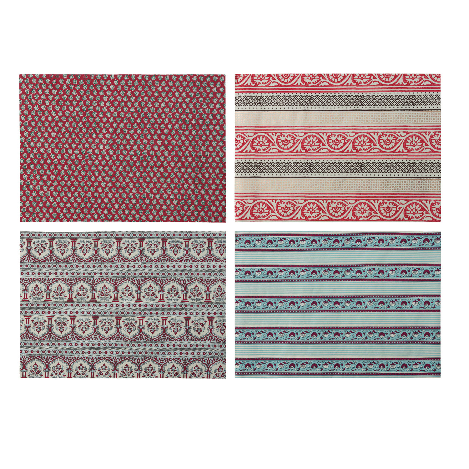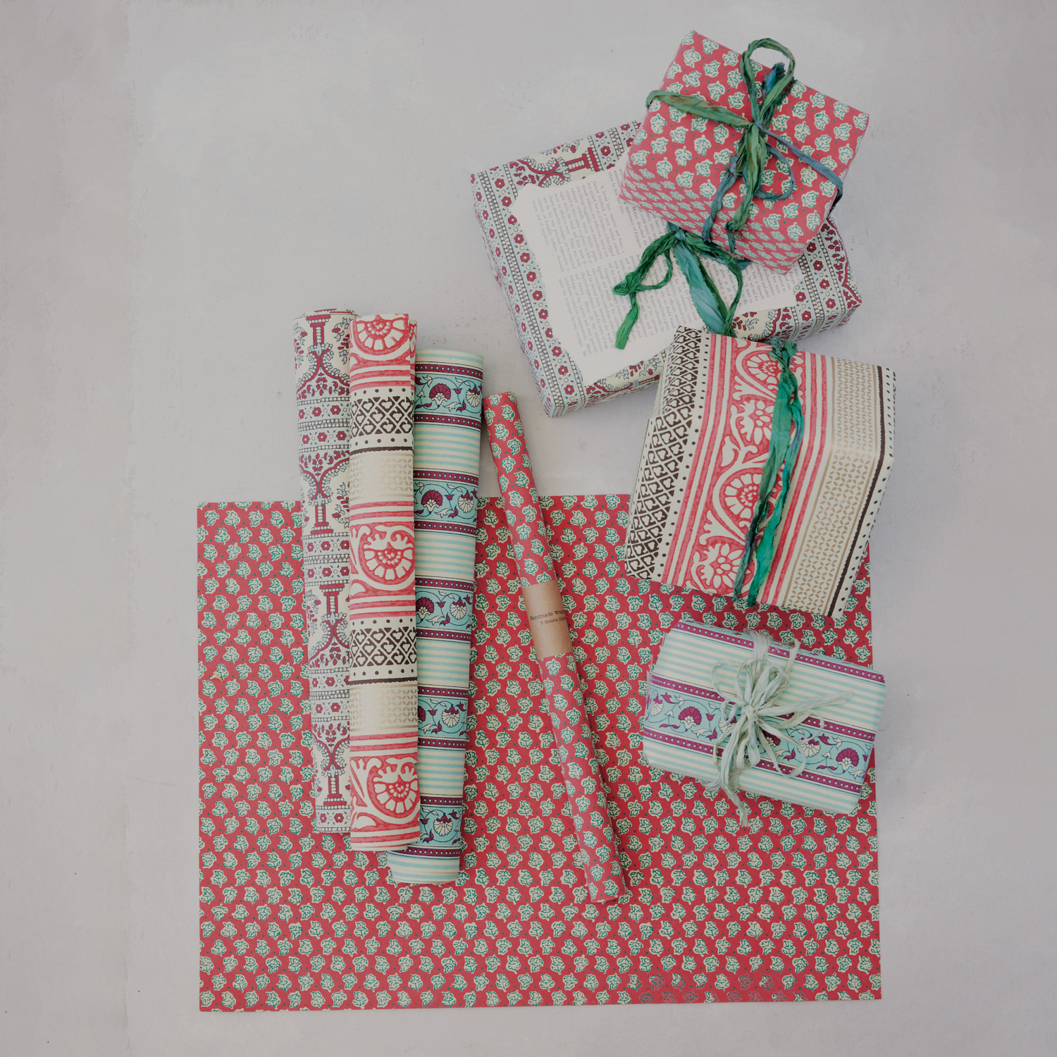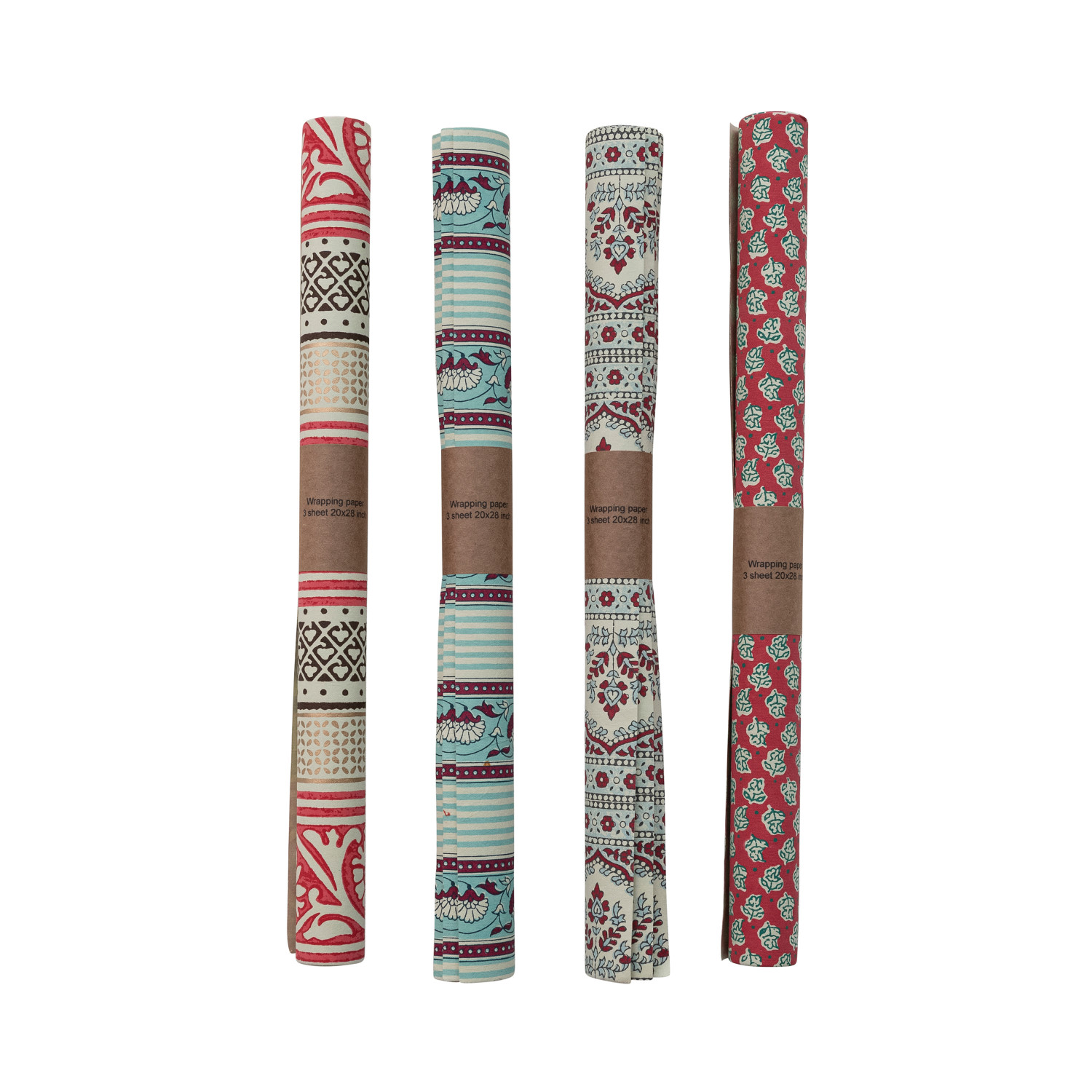 Catalog Name: 28"L x 20"W Handmade Recycled Block Printed Gift Wrapping Paper w/ Vintage Pattern, Multi Color, 4 Styles (3 Sheets Per Roll) ©