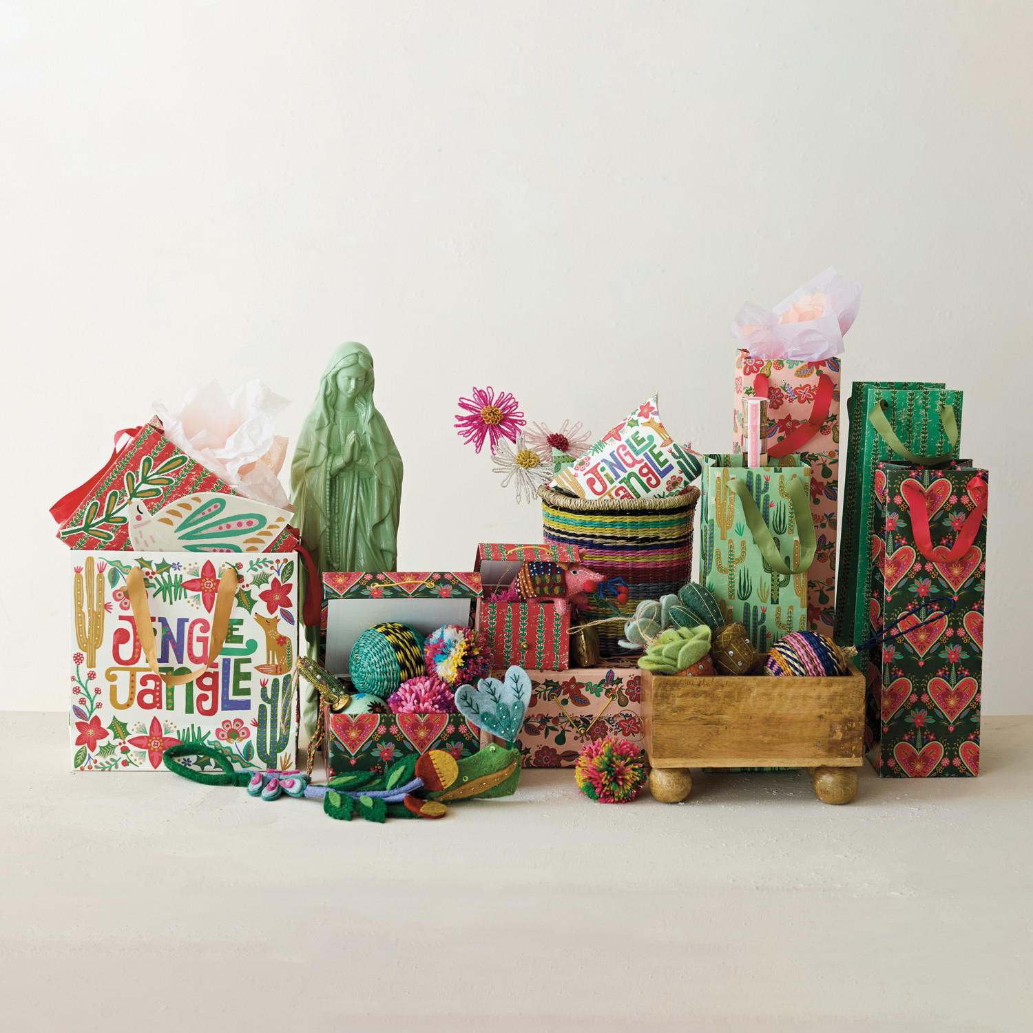 Catalog Name: 6-3/4"L x 4-1/4"W x 1-1/2"H Handmade Printed Recycled Paper Pillow Gift Box w/ Seasonal Pattern & "Fa La La La La"/"Jingle Jangle", Multi Color, 4 Styles ©