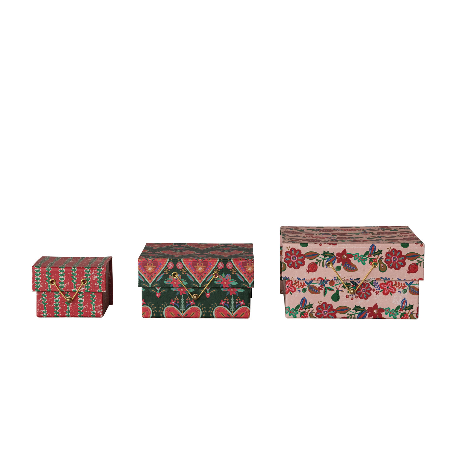Handmade Printed Recycled Paper Gift Boxes with Seasonal Patterns & Closures, Set of 3 ©
