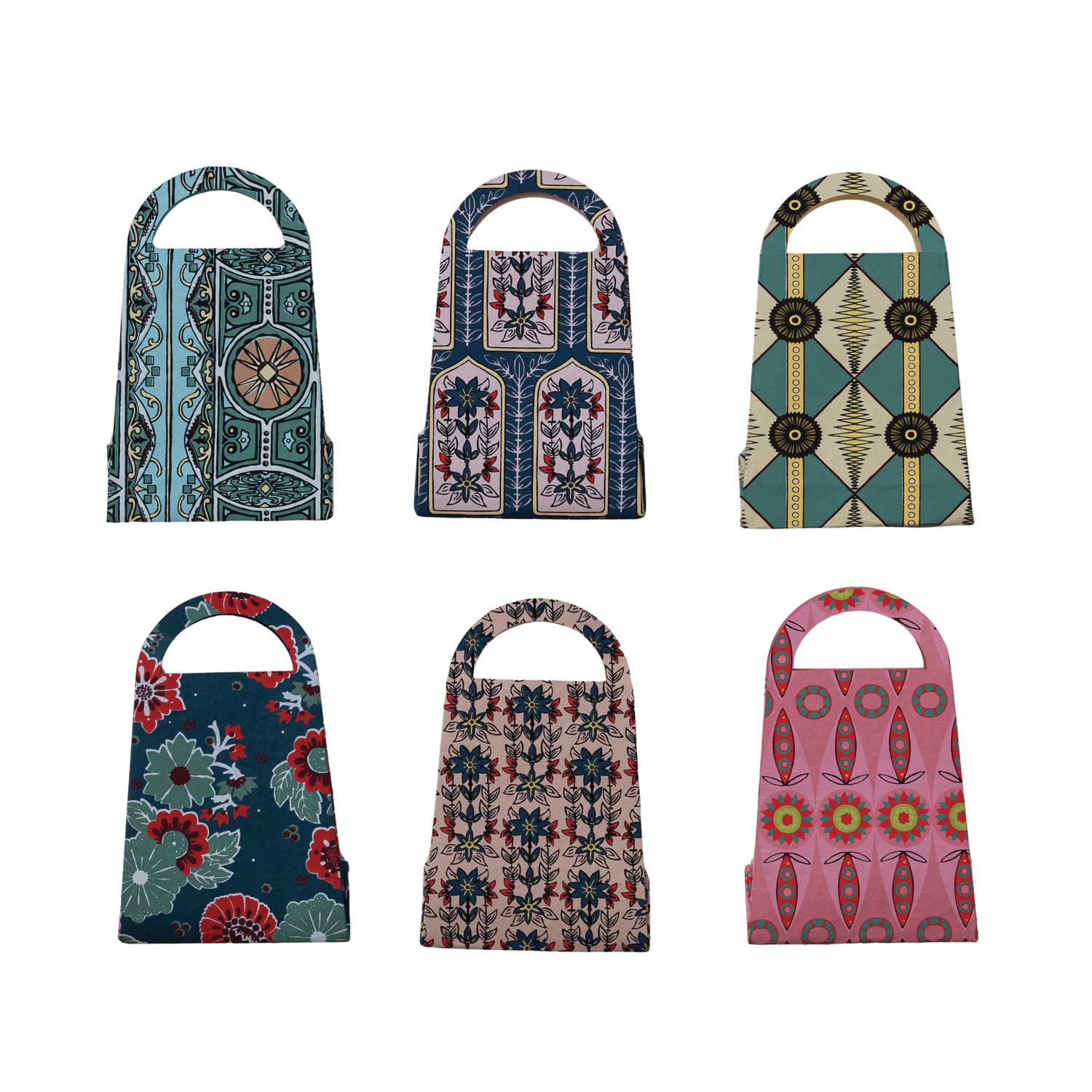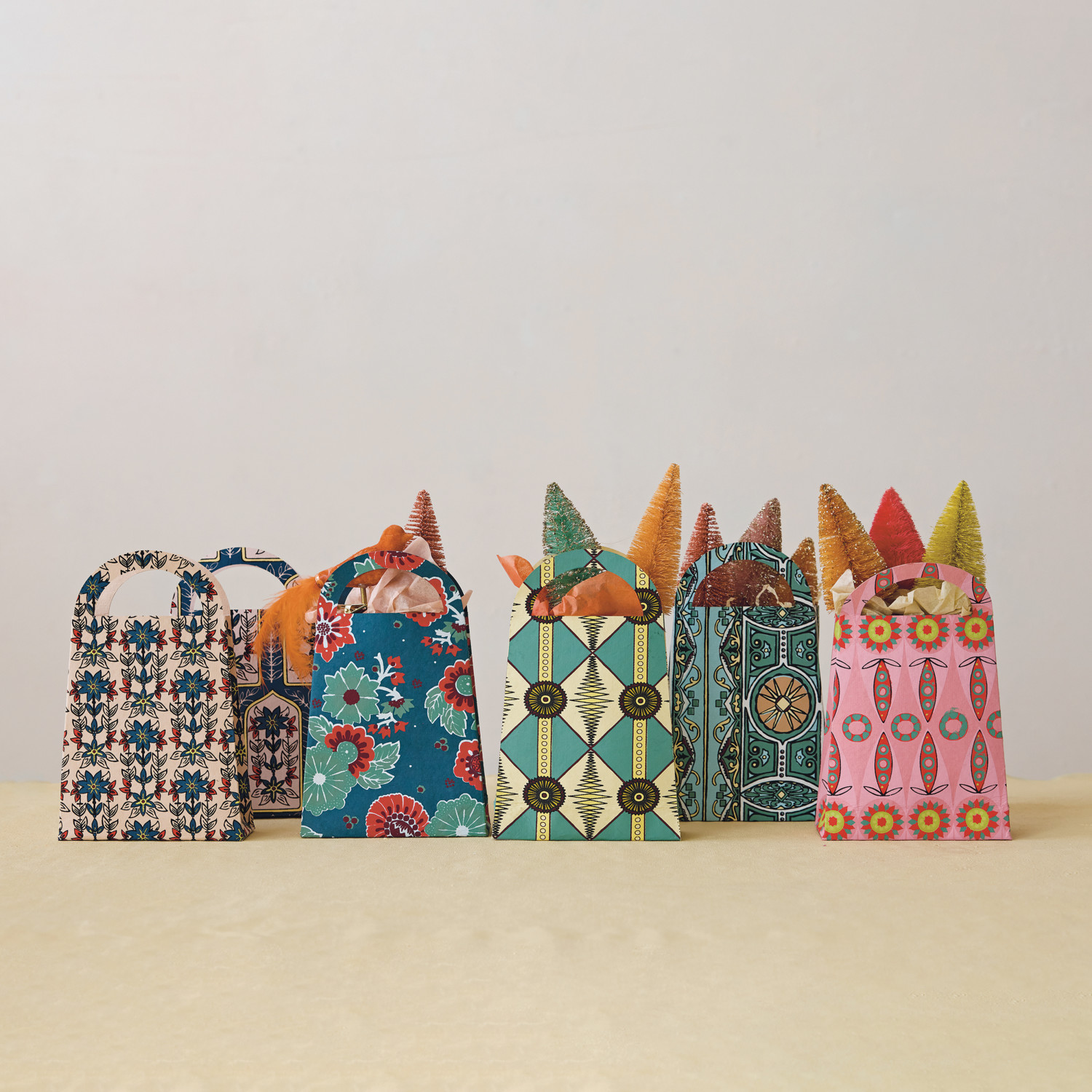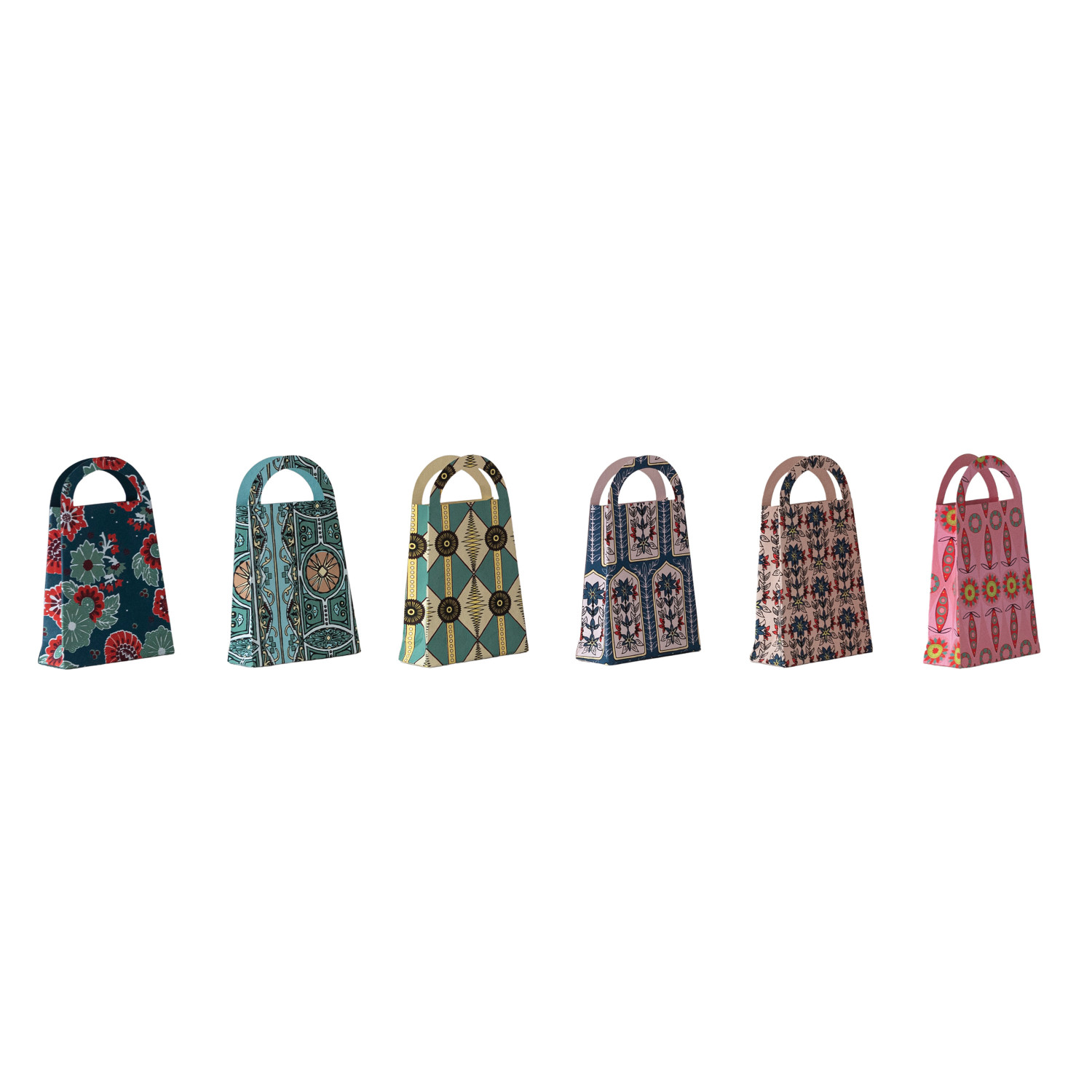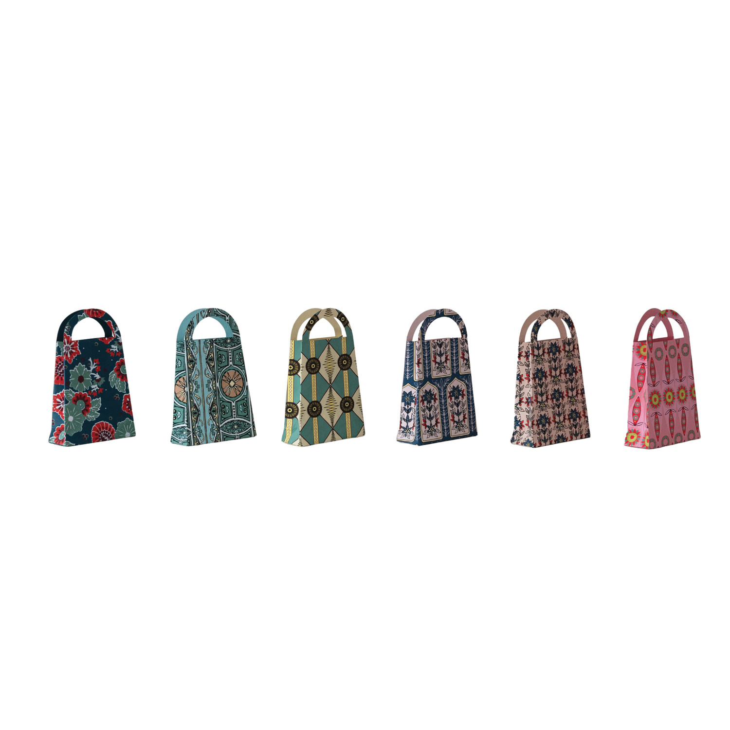 Catalog Name: 5"L x 1-3/4"W x 7-3/4"H Handmade Printed Recycled Paper Gift Bag w/ Pattern, Multi Color, 6 Styles ©
