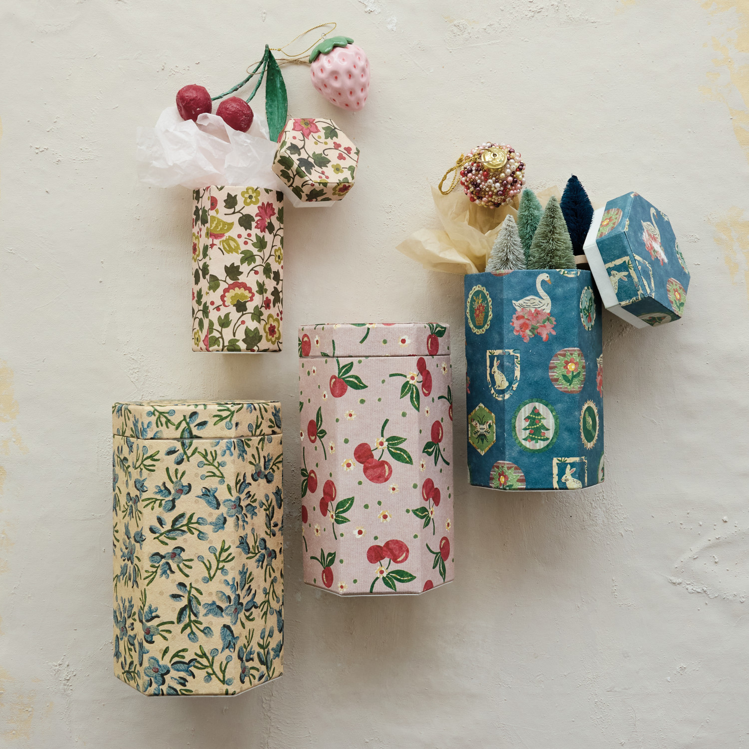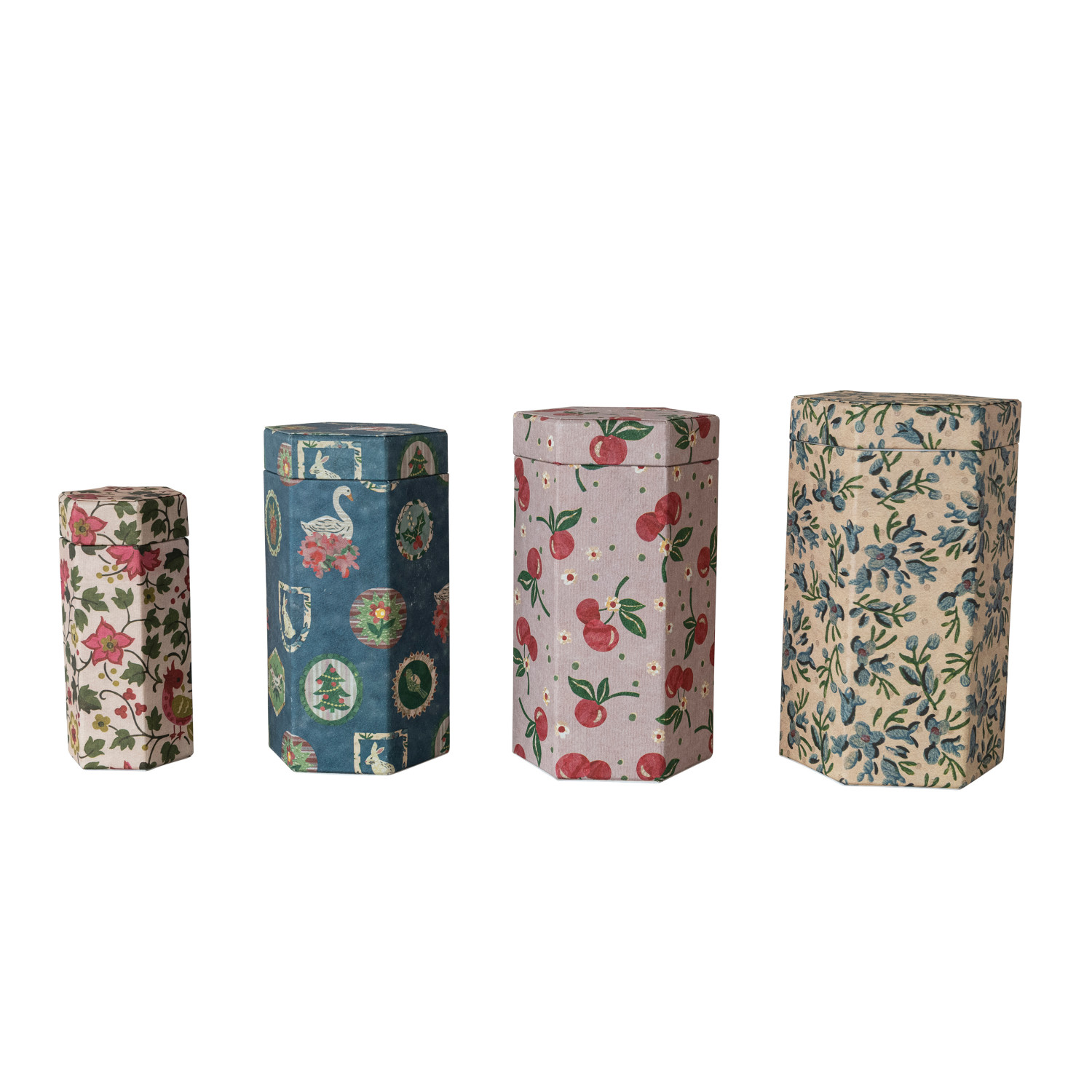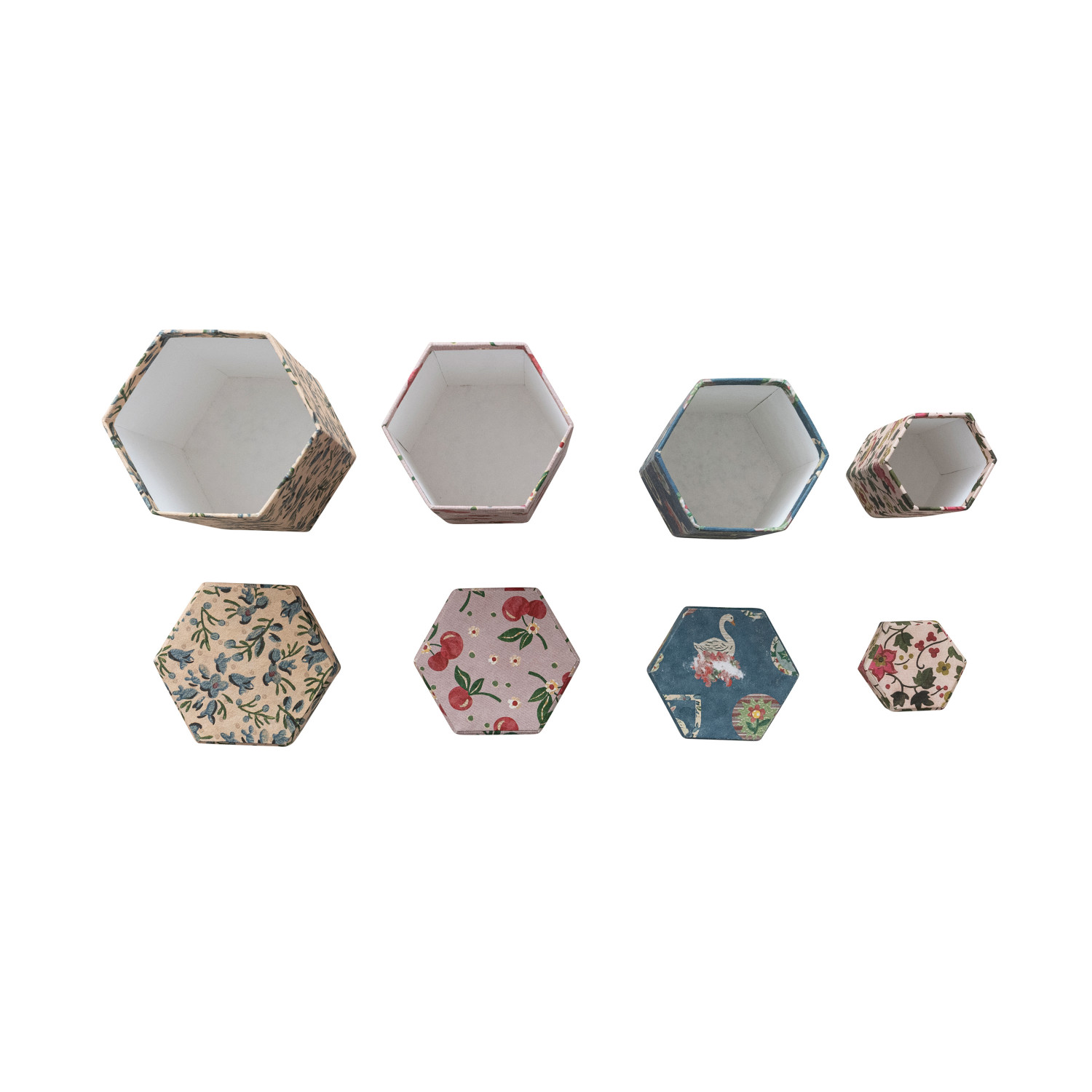 Hexagon Handmade Printed Recycled Paper Nesting Gift Boxes with Pattern, Set of 4 ©