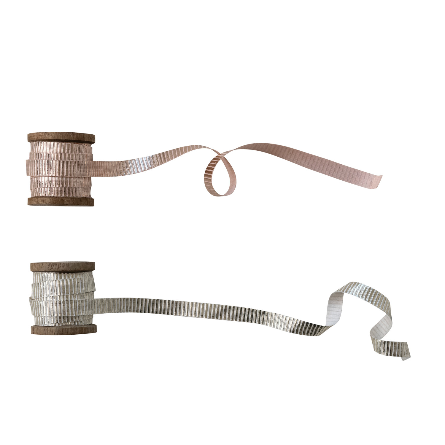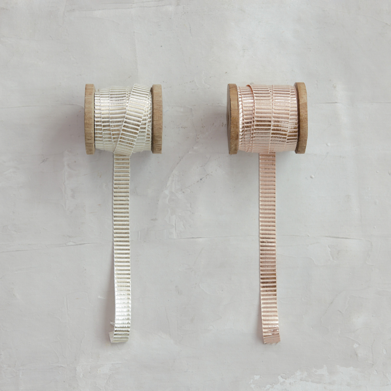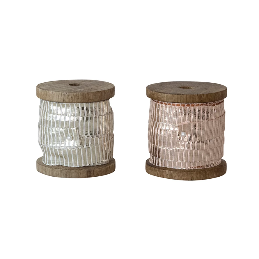 10 Yard 1/2"W Fabric Metallic Ribbon on Wood Spool, 2 Colors