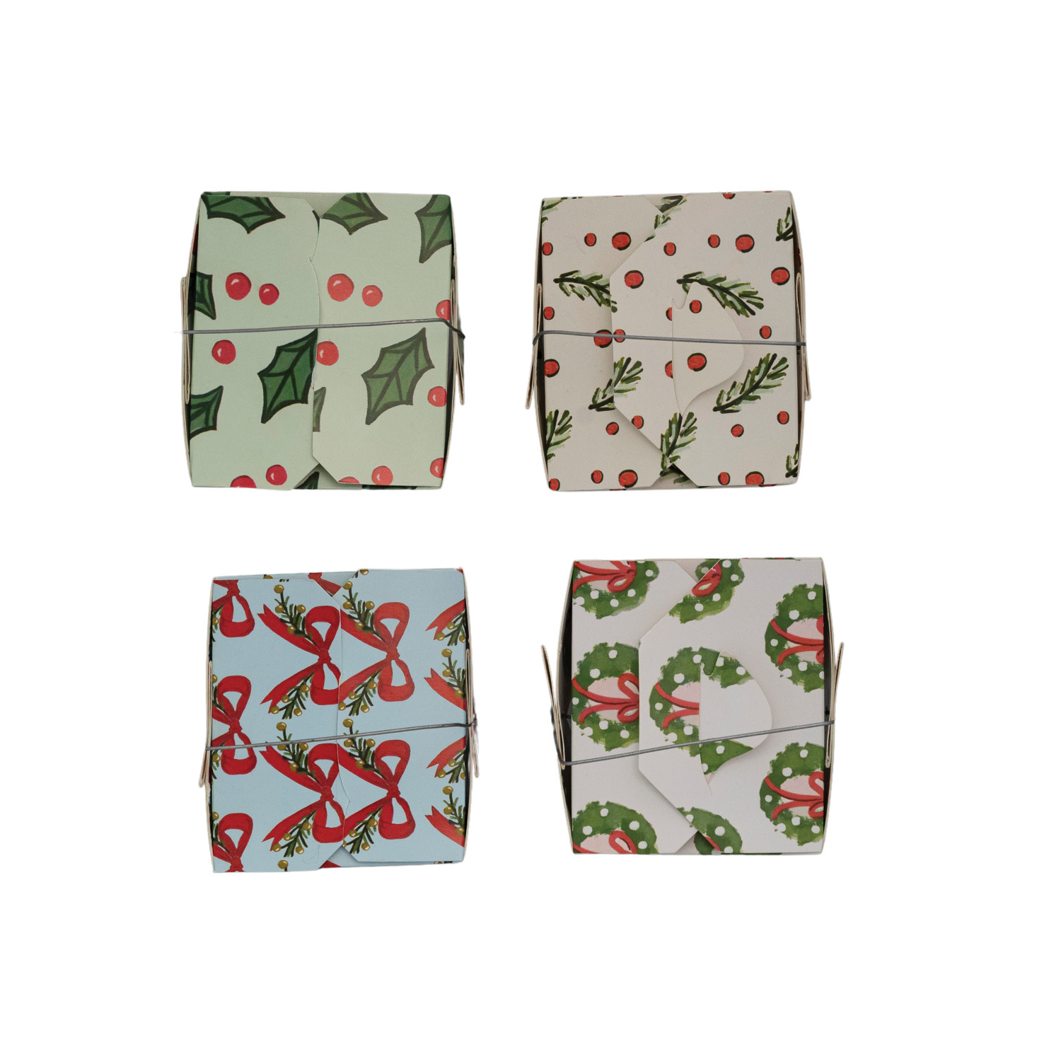 Catalog Name: 4"L x 3-1/2"W x 4"H Handmade Printed Recycled Paper Take-Out Food Shaped Gift Box w/ Holiday Pattern, Multi Color, 4 Styles ©