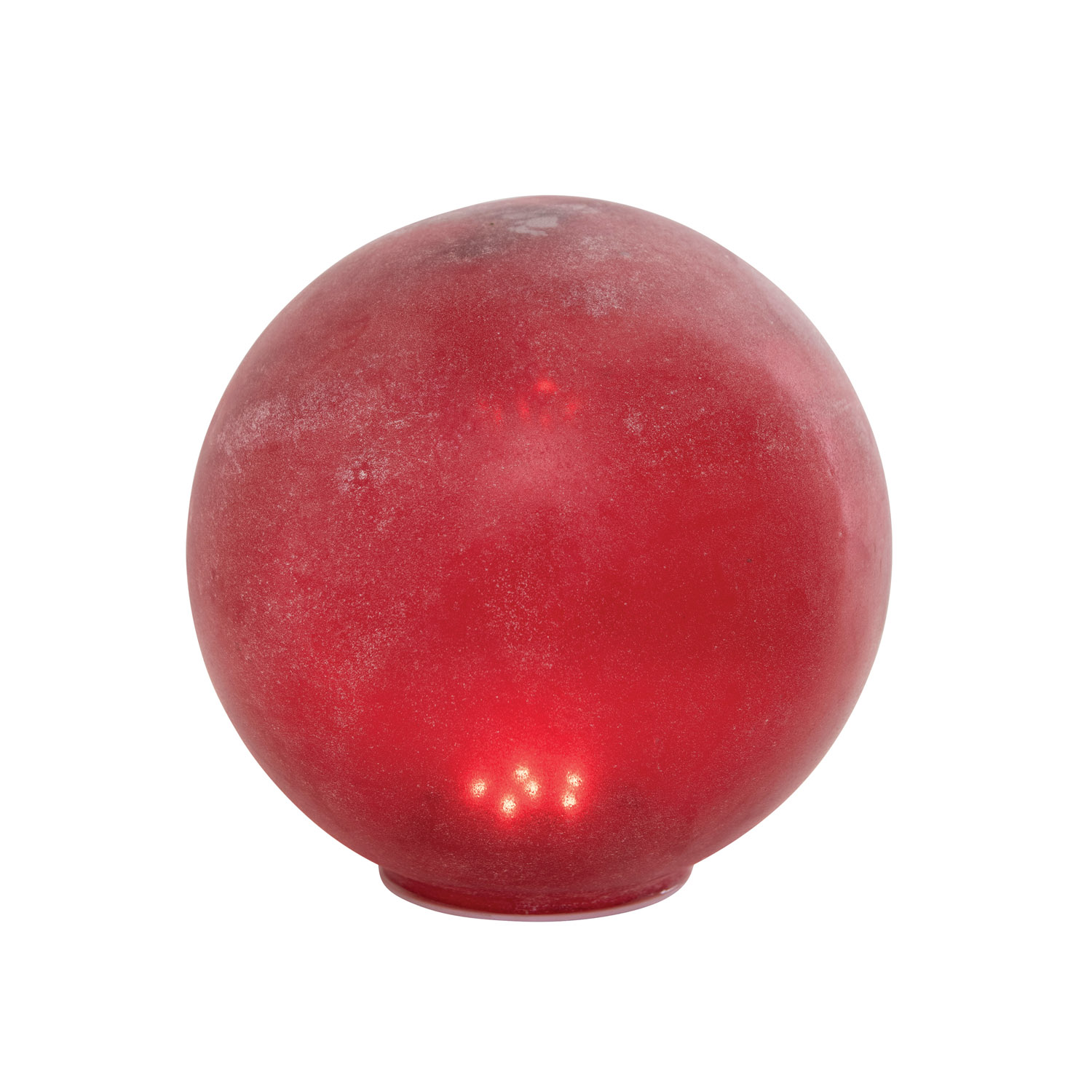 8" Round Frosted Glass Globe with LED Light, Red (Requires 3-AA Batteries)