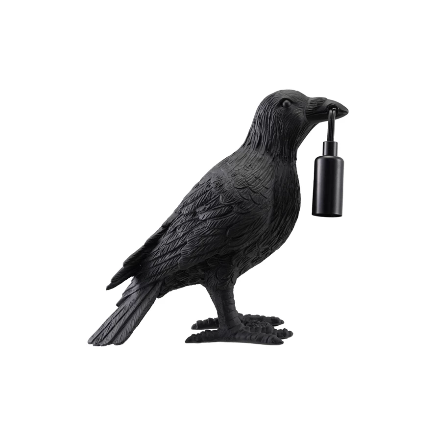 Resin Crow Shaped Table Lamp with Inline Switch, Black