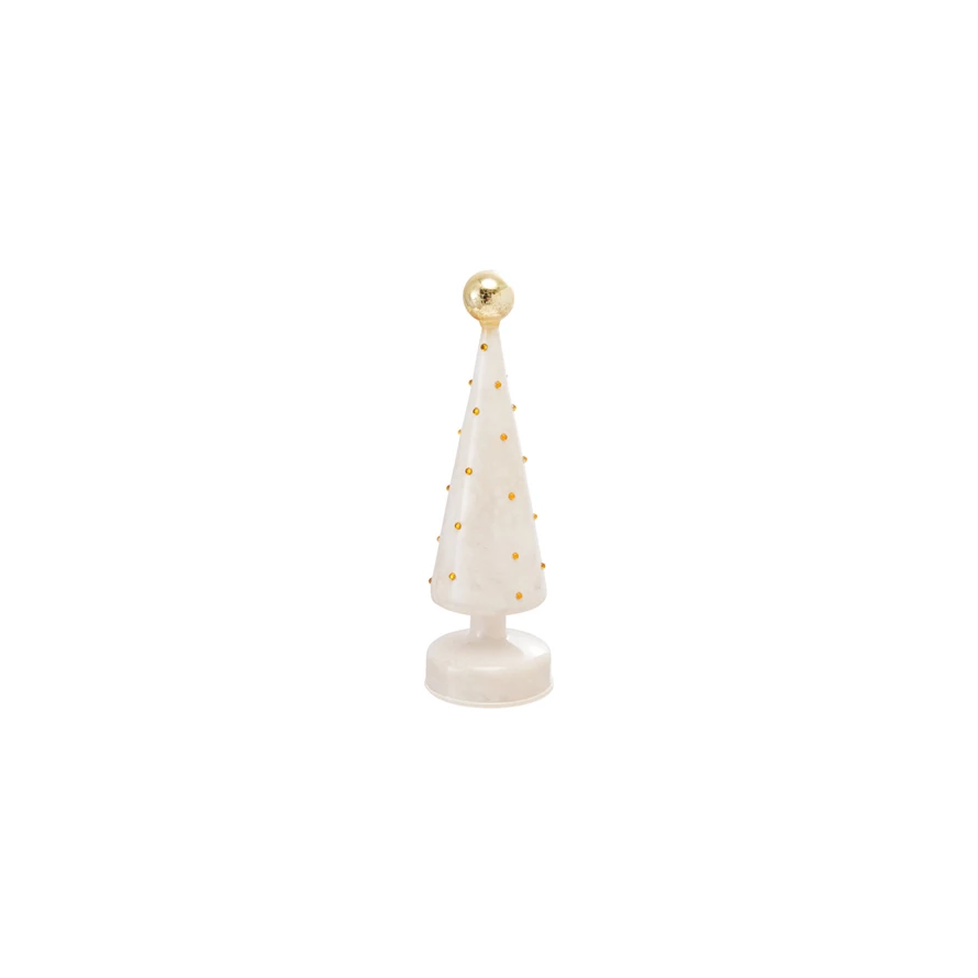 Mercury Glass Tree with Embossed Dots & LED Light, Gold Finish & White