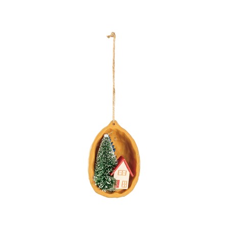 Paper House with Sisal Bottle Brush Trees, Glitter & LED Light (Batteries Included)