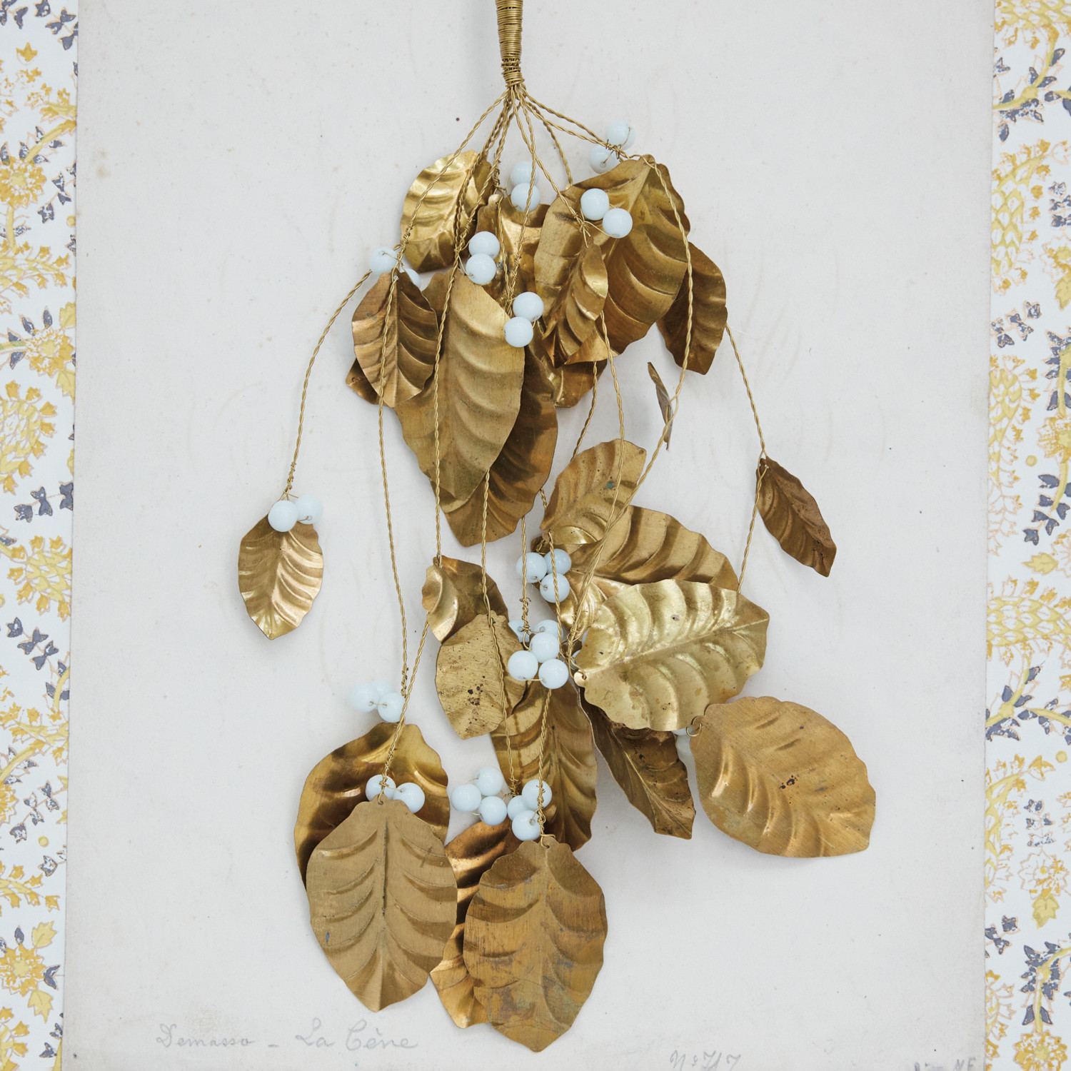 Brass Leaf & Acrylic Bead Bunch, Gold Finish & White
