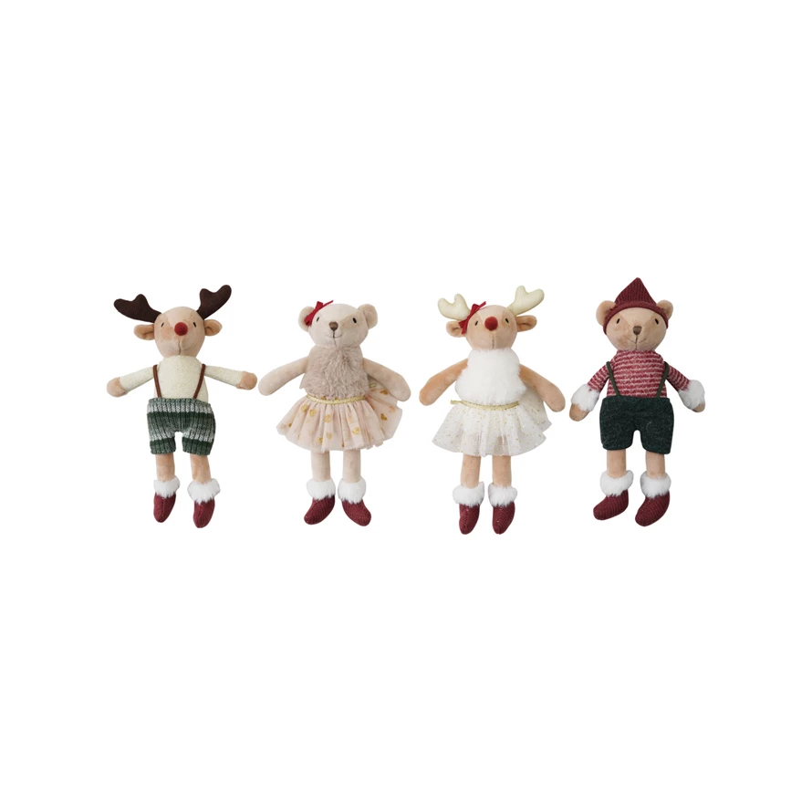 Catalog Name: 4"L x 2"W x 7-1/2"H Plush Reindeer/Bear in Clothes, Multi Color, 4 Styles