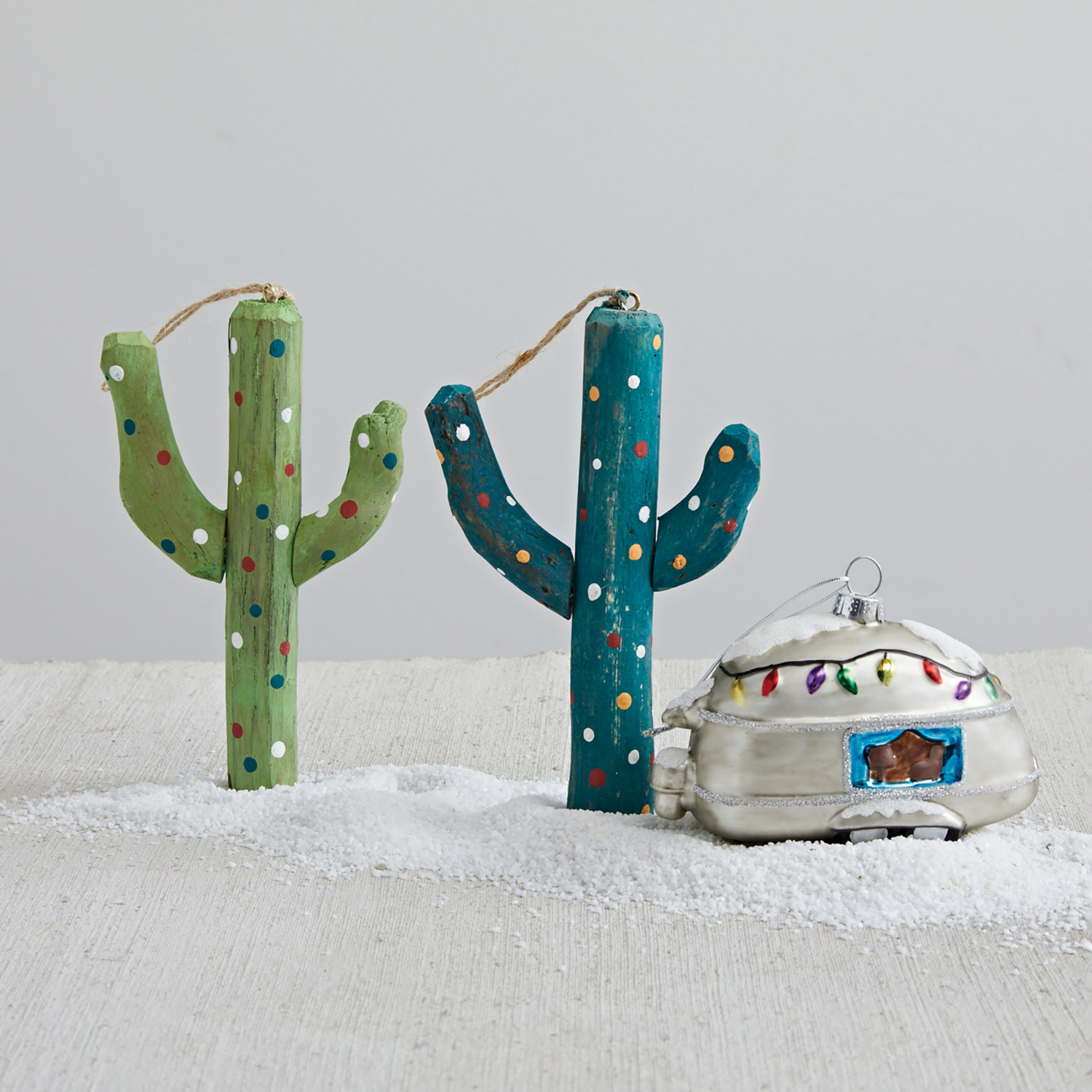 Catalog Name: 2-1/4"H Hand-Painted Glass Camper Ornament w/ Lights, Multi Color