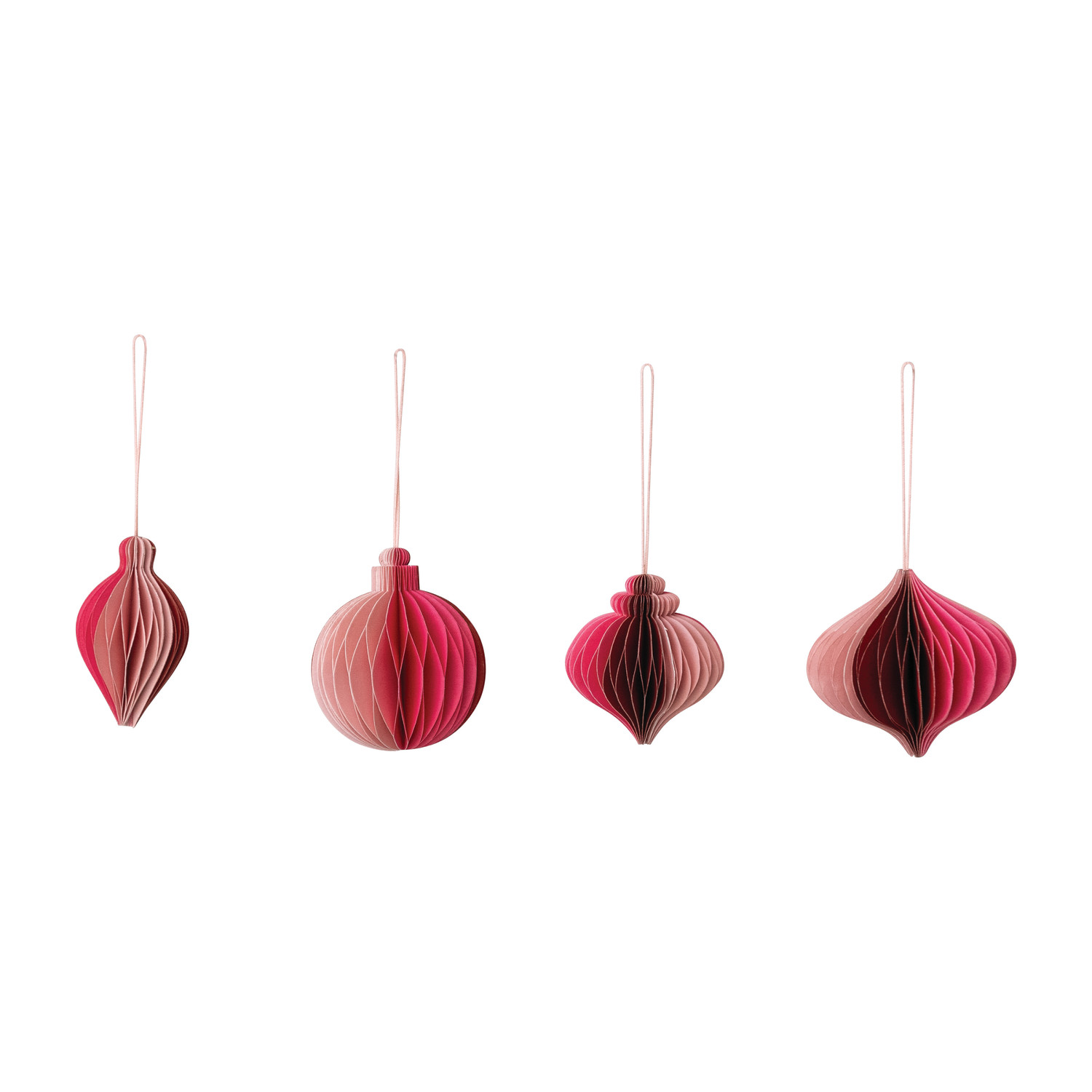 Catalog Name: 2-3/4"H - 3-1/4"H Handmade Recycled Paper Folding Honeycomb Ornament, Red, Pink & Fuchsia Color, 4 Styles