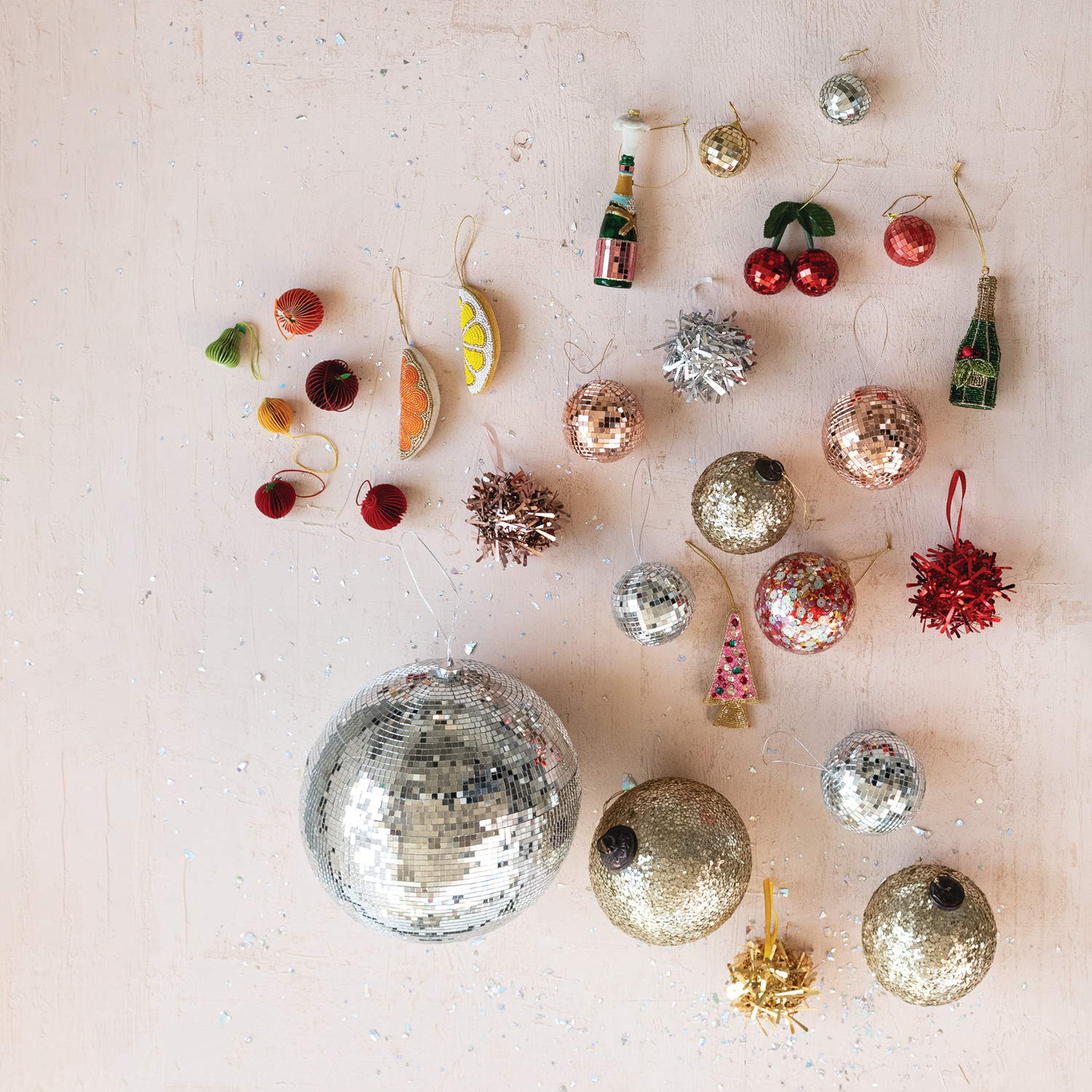 Foam & Plastic Mirrored Mosaic Ball Ornament, Silver Finish