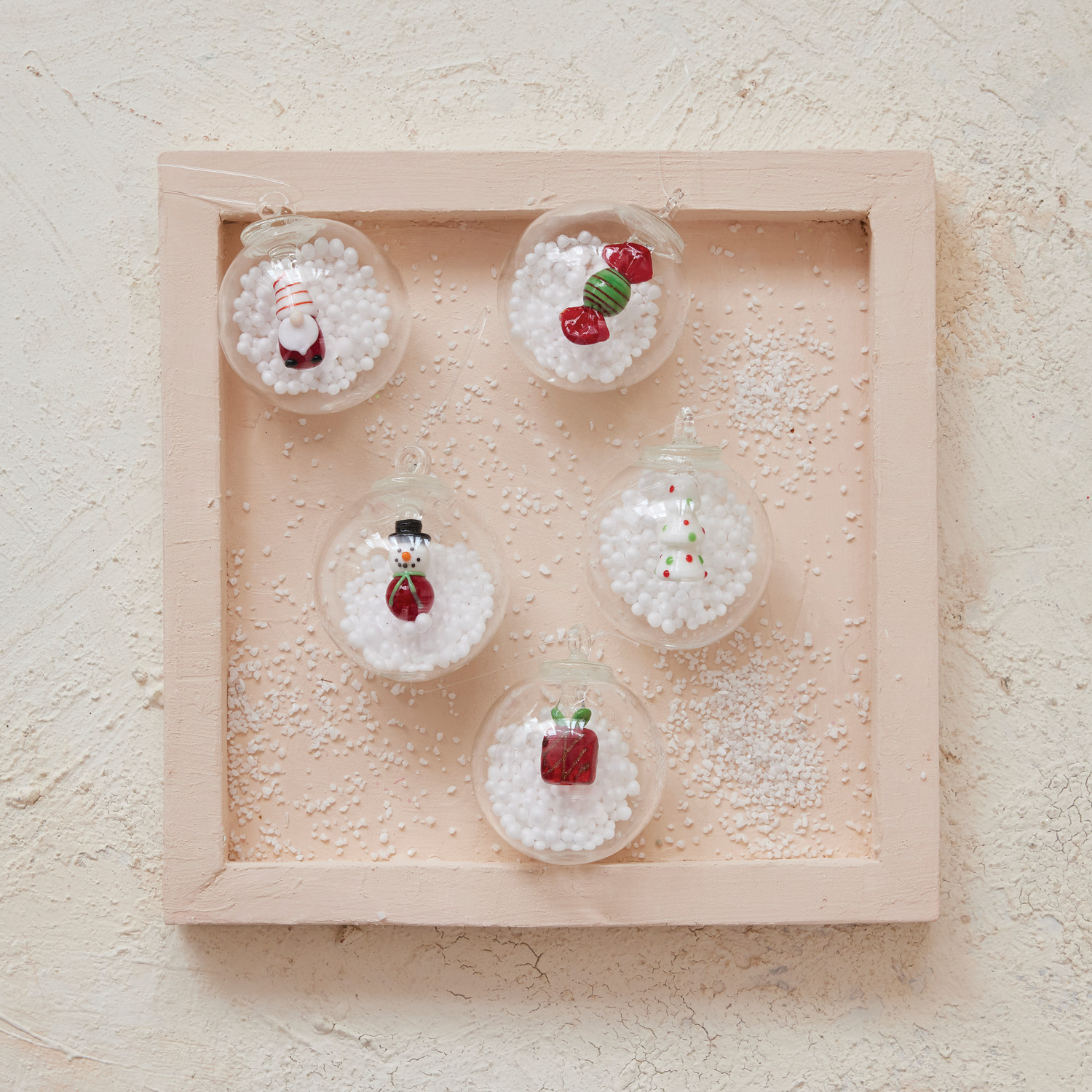 Glass Snow Globe Ornament with Figure & Faux Snow Inside, 5 Styles