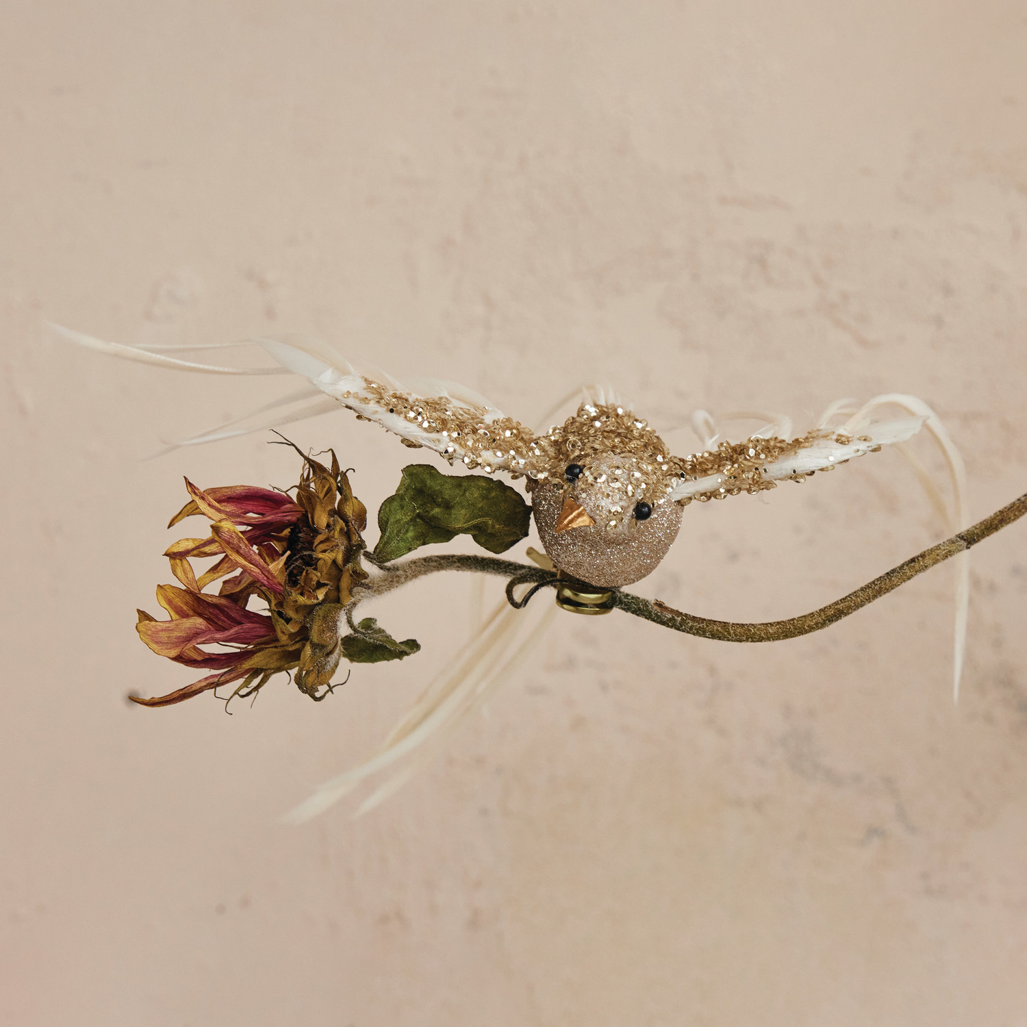 Foam & Feather Bird Clip-on Ornament with Glitter & Beads