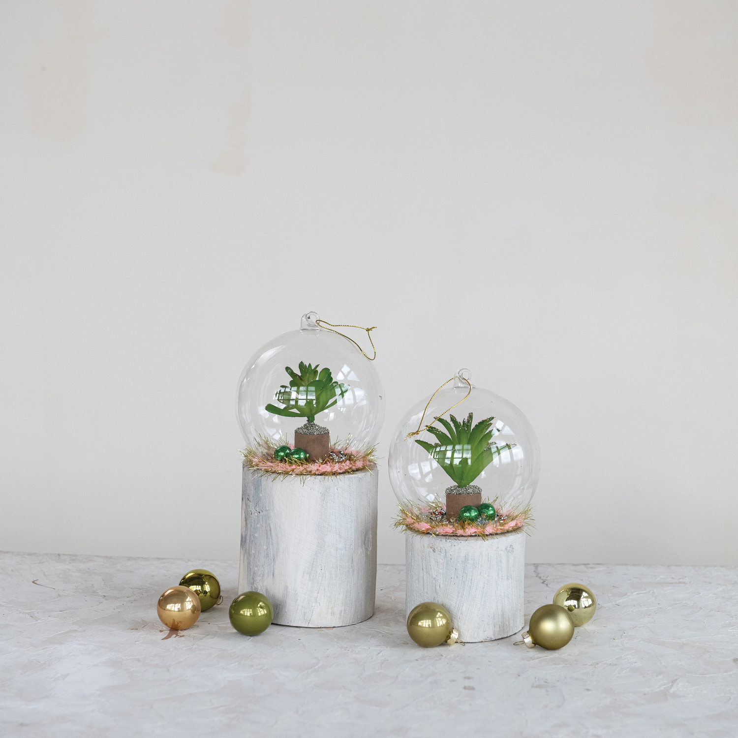 Glass Snow Globe Ornament with Tinsel Base, 2 Styles